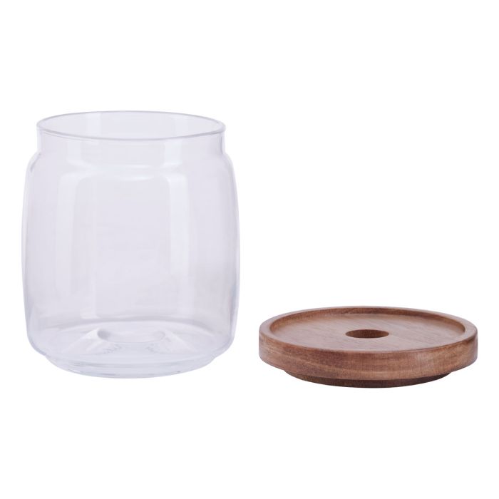 - Airtight Wooden lid keeping moisture away from the food. Wide neck for easy access on the inside of the glass.