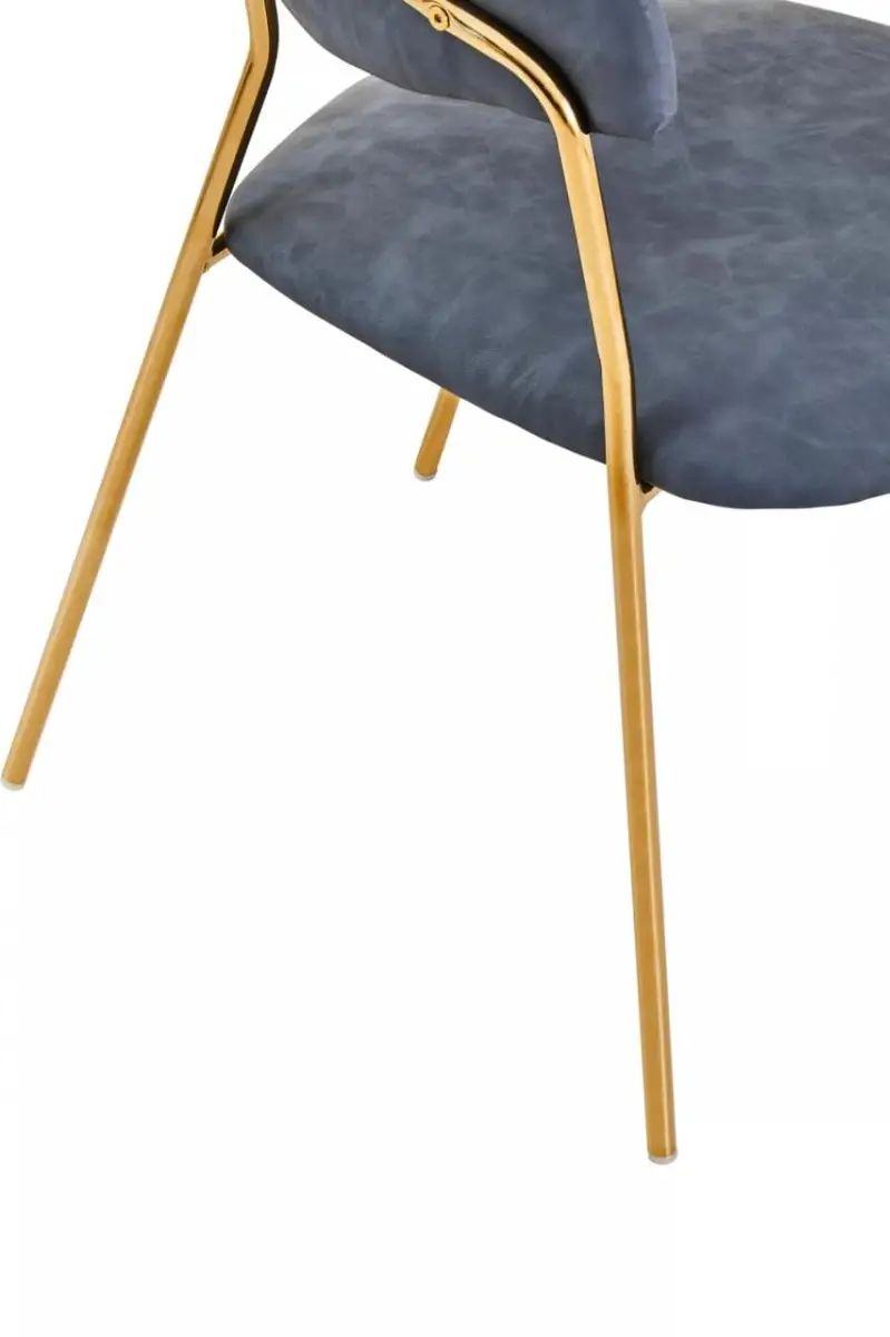 These chairs exude contemporary elegance with its simple, minimalistic gold-finish metal legs. Supporting the padded seat and back upholstered in dark grey faux leather, its angular frame features channel detailing for added texture.