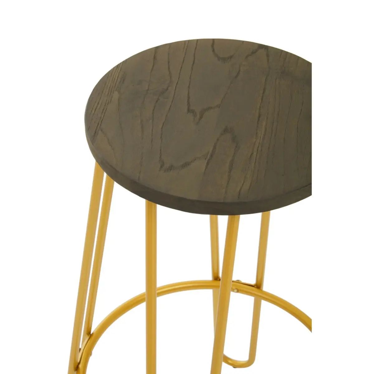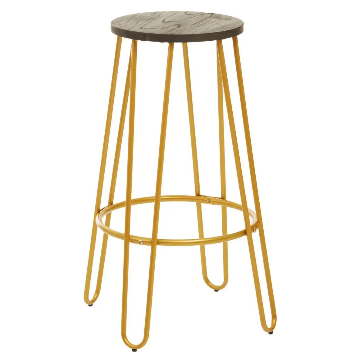 Incorporating a traditional, timeless design to any bar area, these bar stools in gold finish metal exudes elegance. Its round elm wood seat rests atop hairpin legs, while a footrest enhances support and ensures an optimal seating experience.