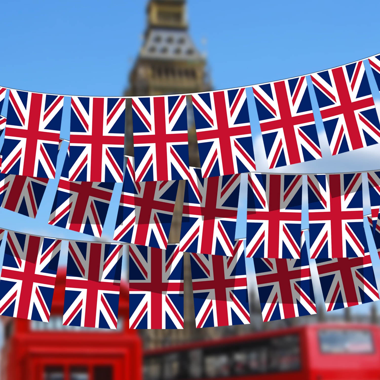 Choose these buntings for decoration and celebration of landmark event of this great country in your house or in street party, these fantastic buntings come in square shape with 20pcs that spans approx 10M and showcases your patriotic values and shows your pride in the UK.