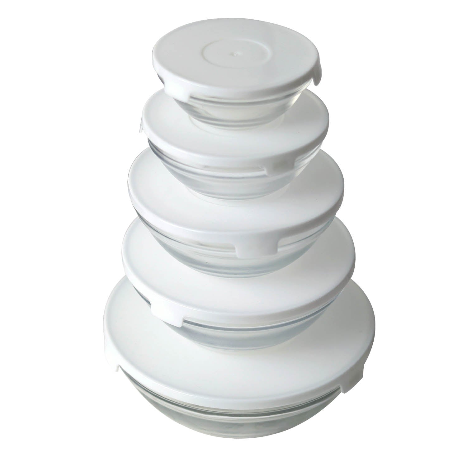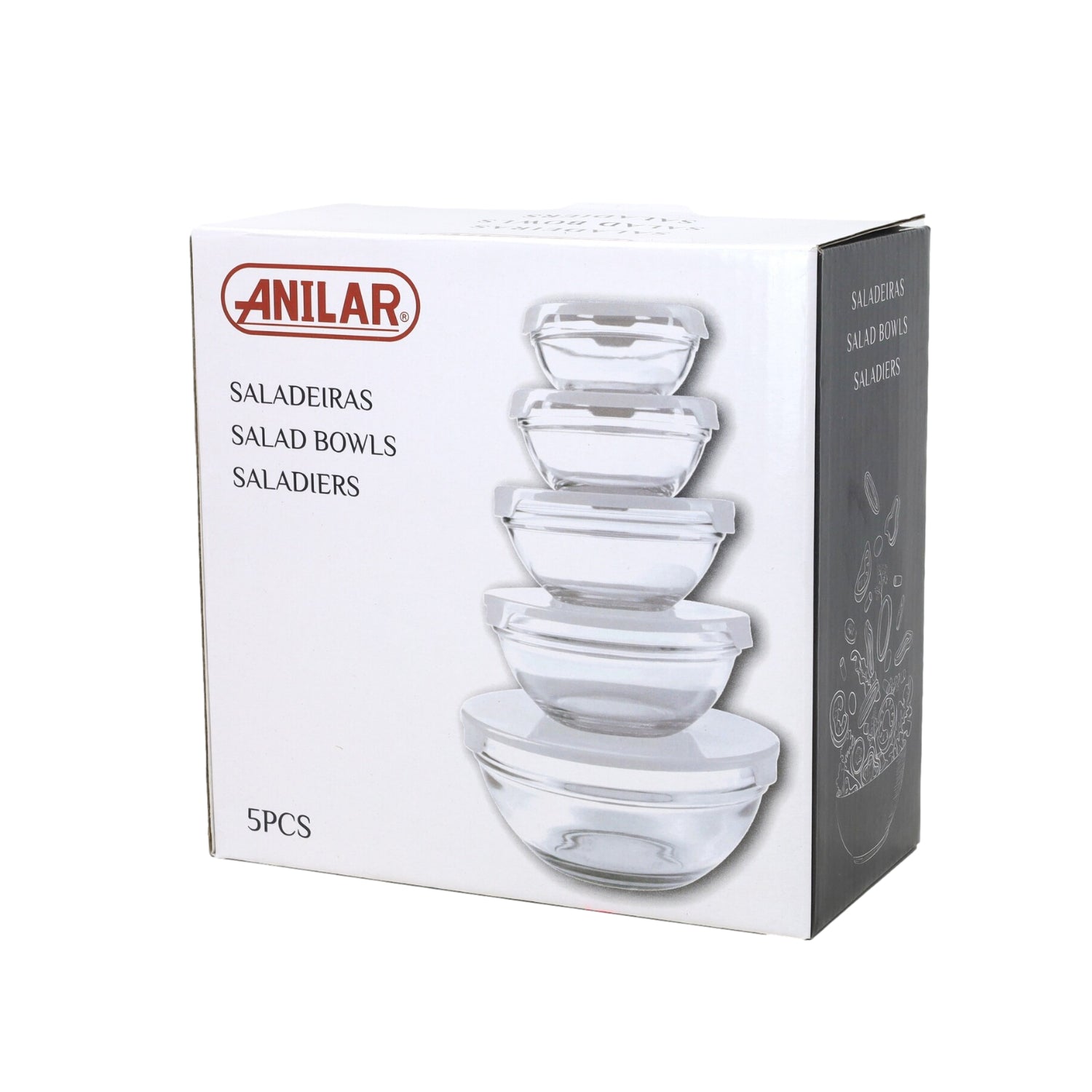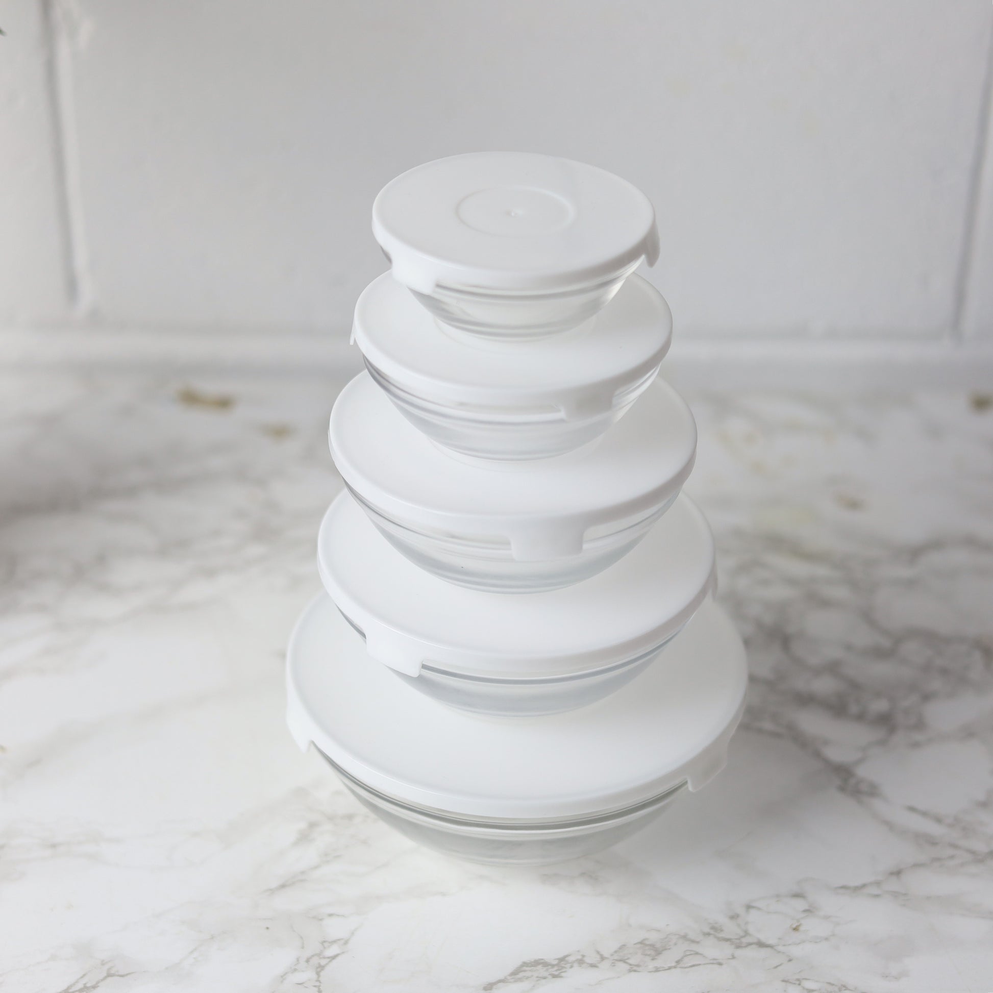 This 5-piece glass bowl set is a versatile and essential addition to any kitchen. The bowls come in assorted sizes and are perfect for everything from mixing ingredients to serving salads or storing leftovers.