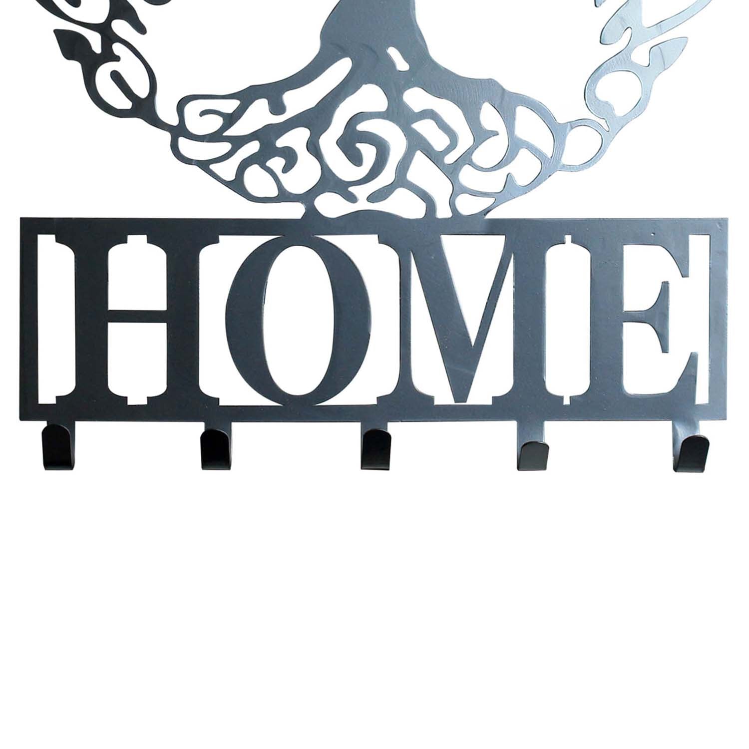 Wall-mounted black metal coat hook rack with a Tree of Life design for your home or office. Includes 5 hooks for hanging keys, lanyards, coats, leashes and umbrellas.