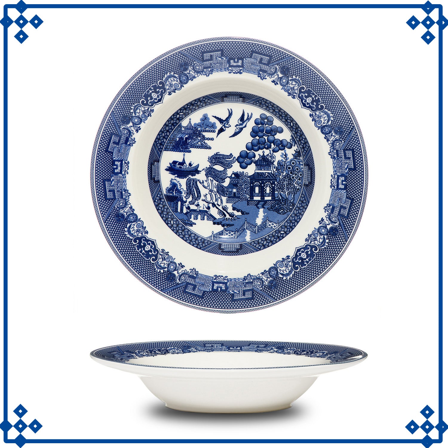 Originally hand engraved in the 19th century onto copper plates, great skill was used to achieve the utmost detail and clarity. Blue Willow has since become a timeless classic, collected all over the world.