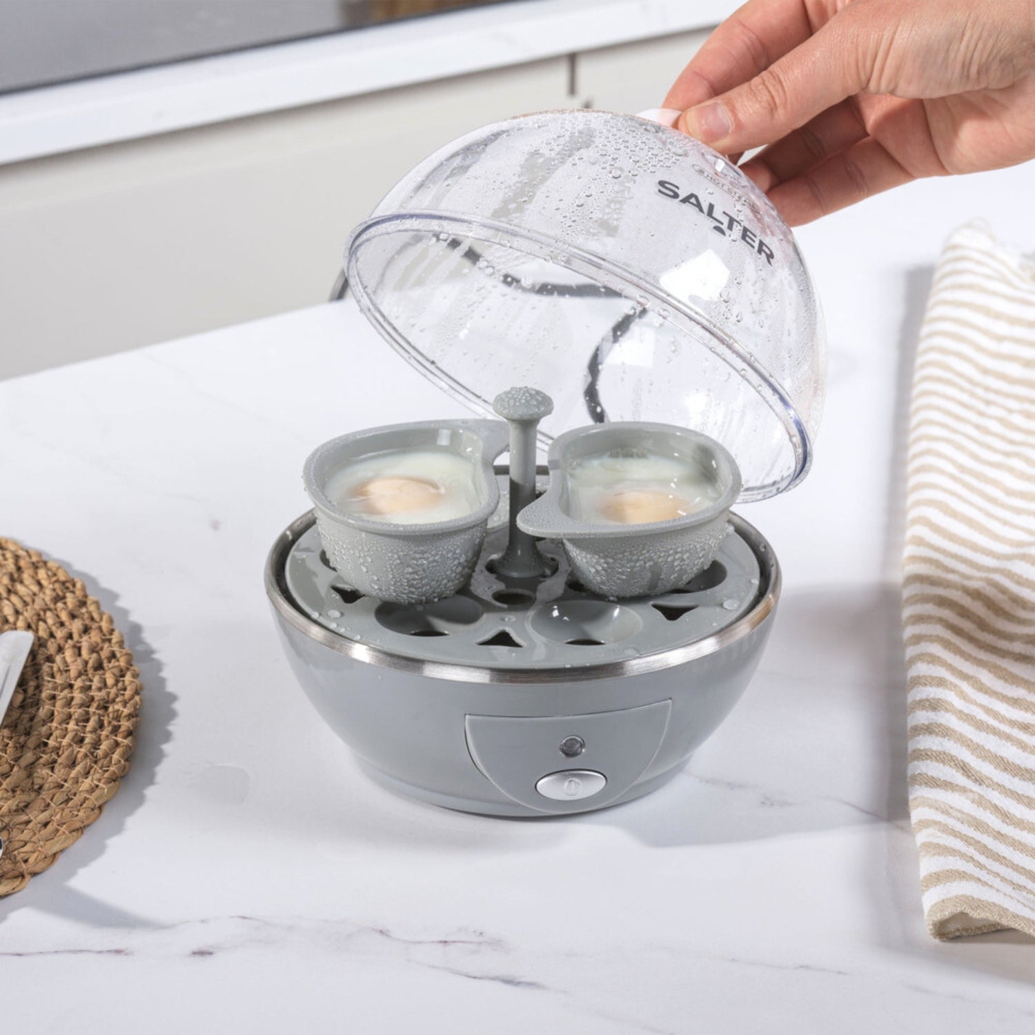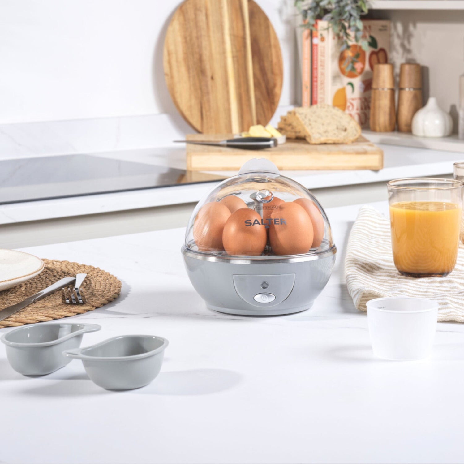 Experience perfectly cooked eggs every time with the Salter Aspen Egg Steamer. Ideal for soft, medium, and hard-boiled eggs, this egg cooker has a 6-egg capacity and includes two poaching trays for added convenience