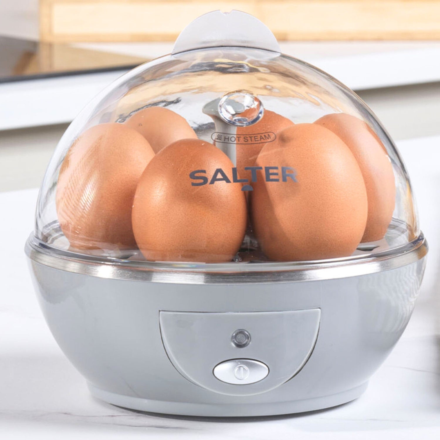- The Salter Aspen Egg Steamer has a 6-egg capacity and makes soft, medium, and hard-boiled eggs