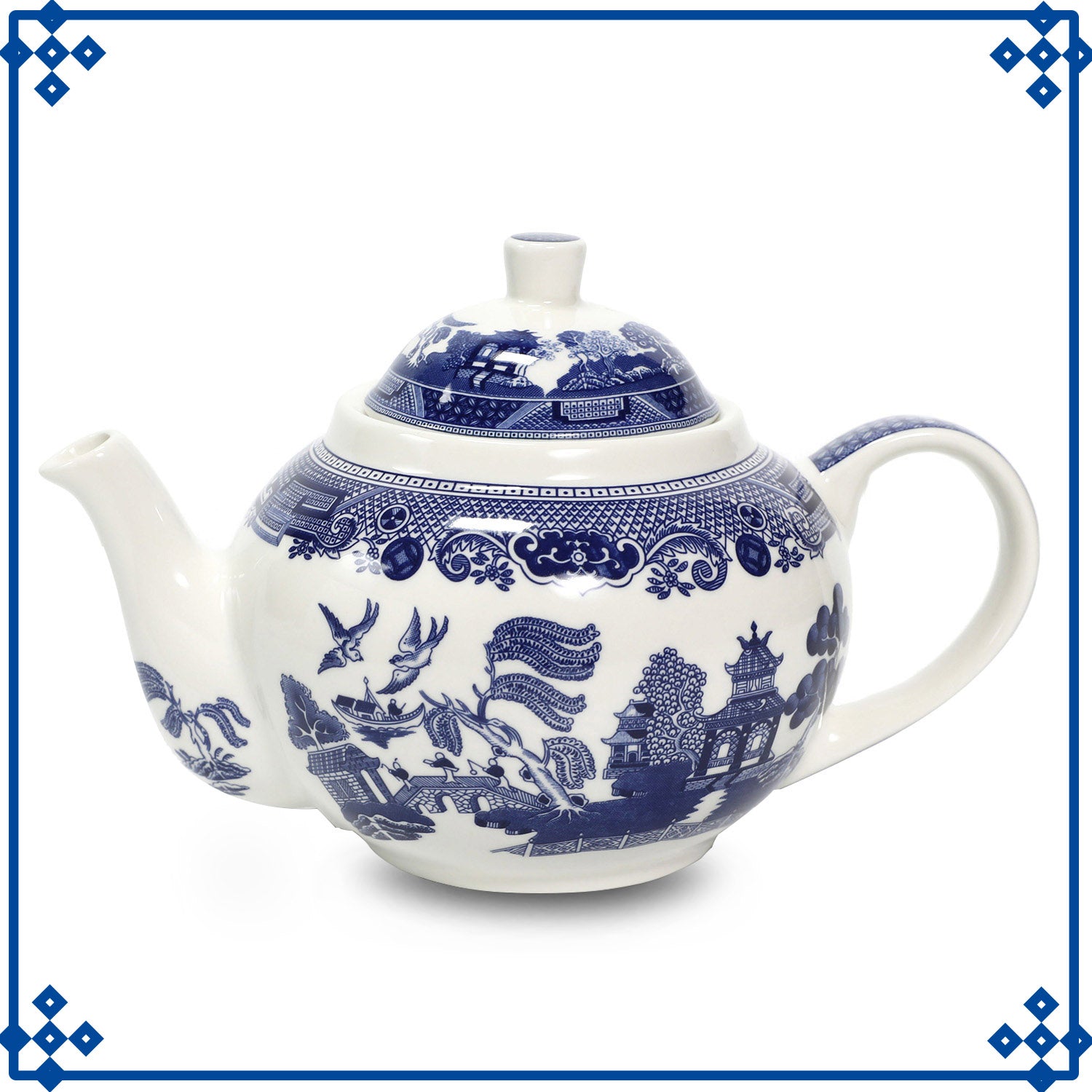 6-Serving Set Ceramic Blue Willow Mug Teapot