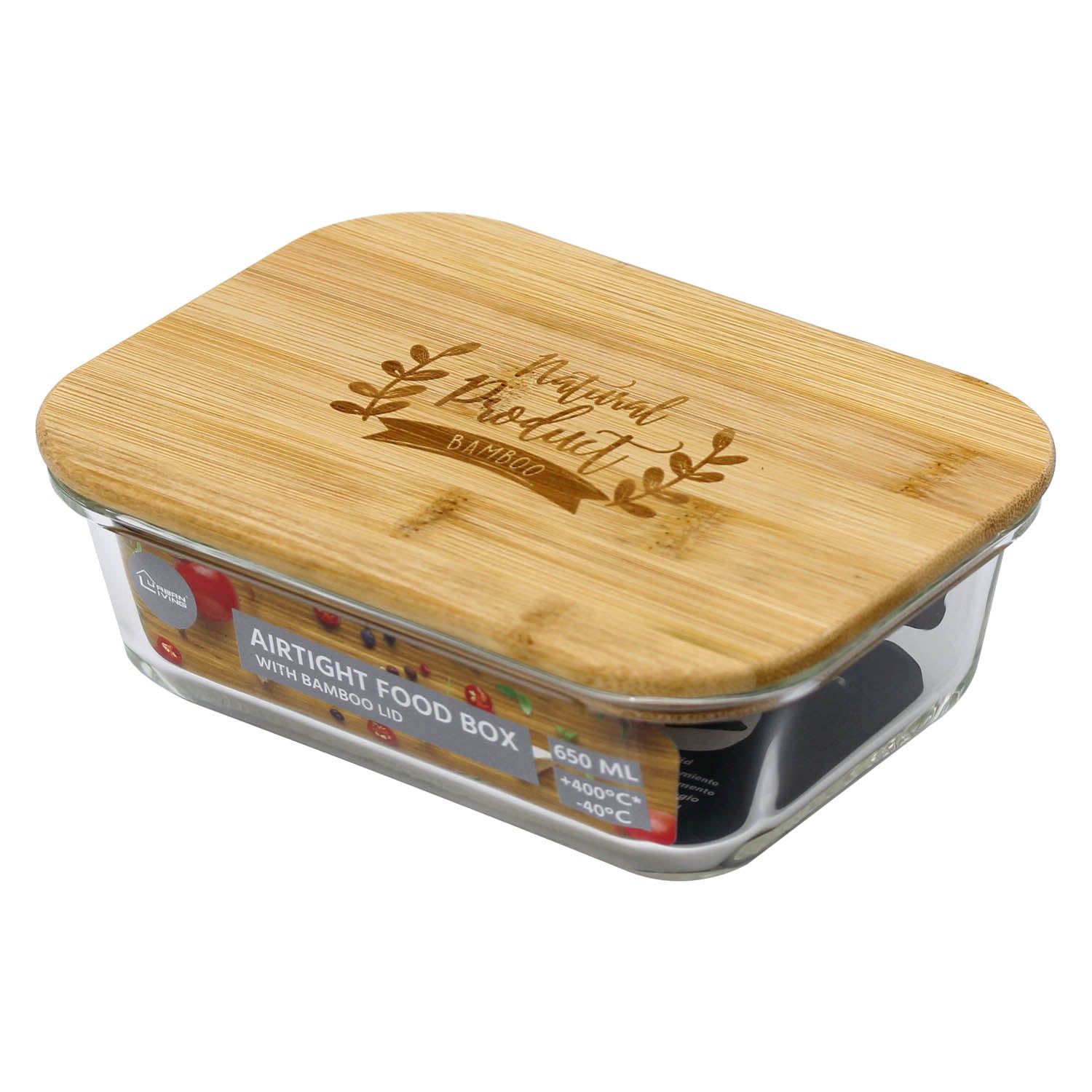 No better way to safely store, cook and dine food, than with this glass food container. This rectangular container crafted a thick single borosilicate glass mould with an engraved bamboo lid for organised and airtight storage of fresh food, dry food, lunch, meal preps or even leftovers. This combination of glass and bamboo is a much safe & environmentally friendly reusable storage solution in comparison to plastic.