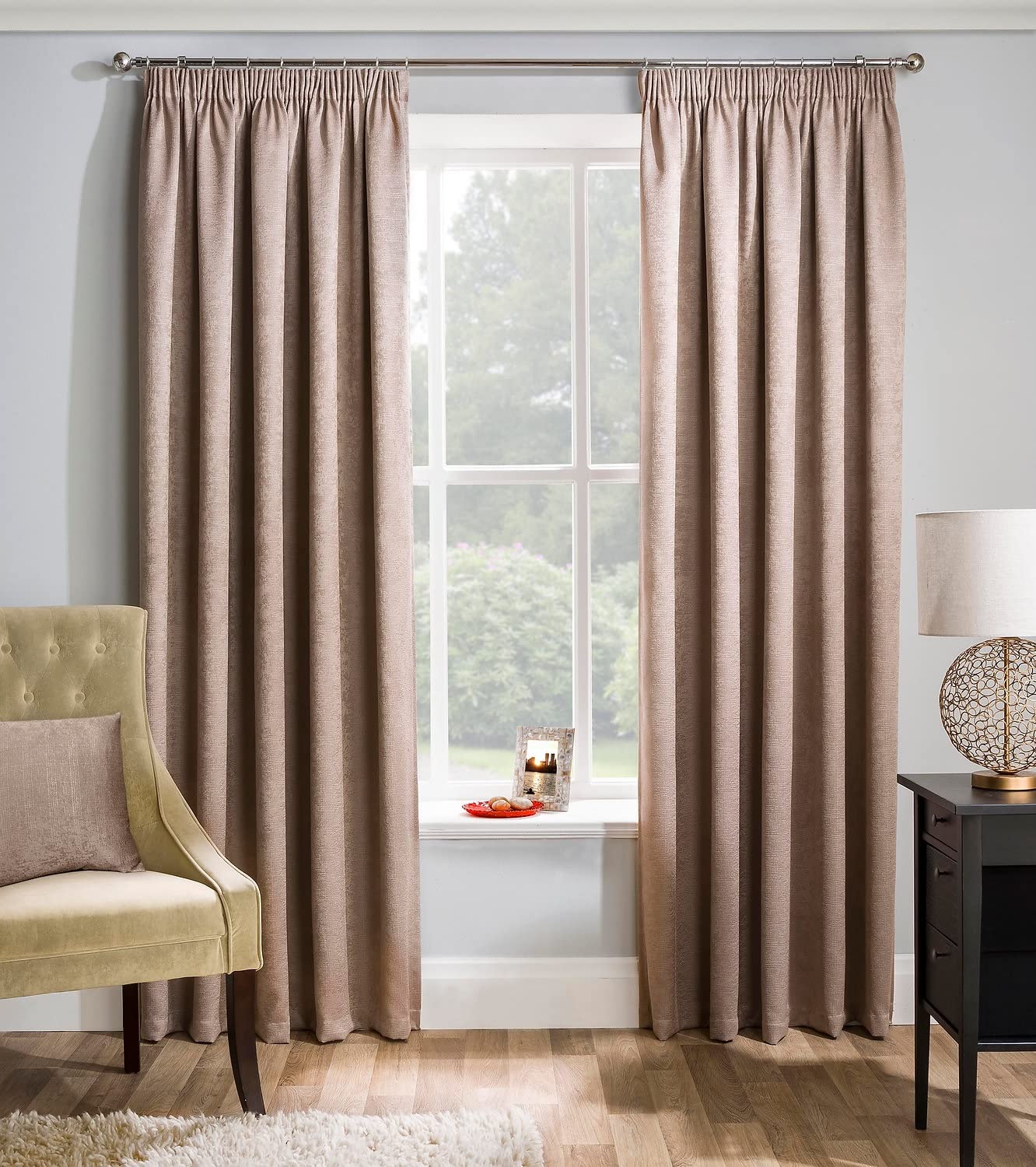 The set contains a pair of pencil pleat lined curtains, each curtain size is 168cm x 183cm (66" x 72")(Approx)