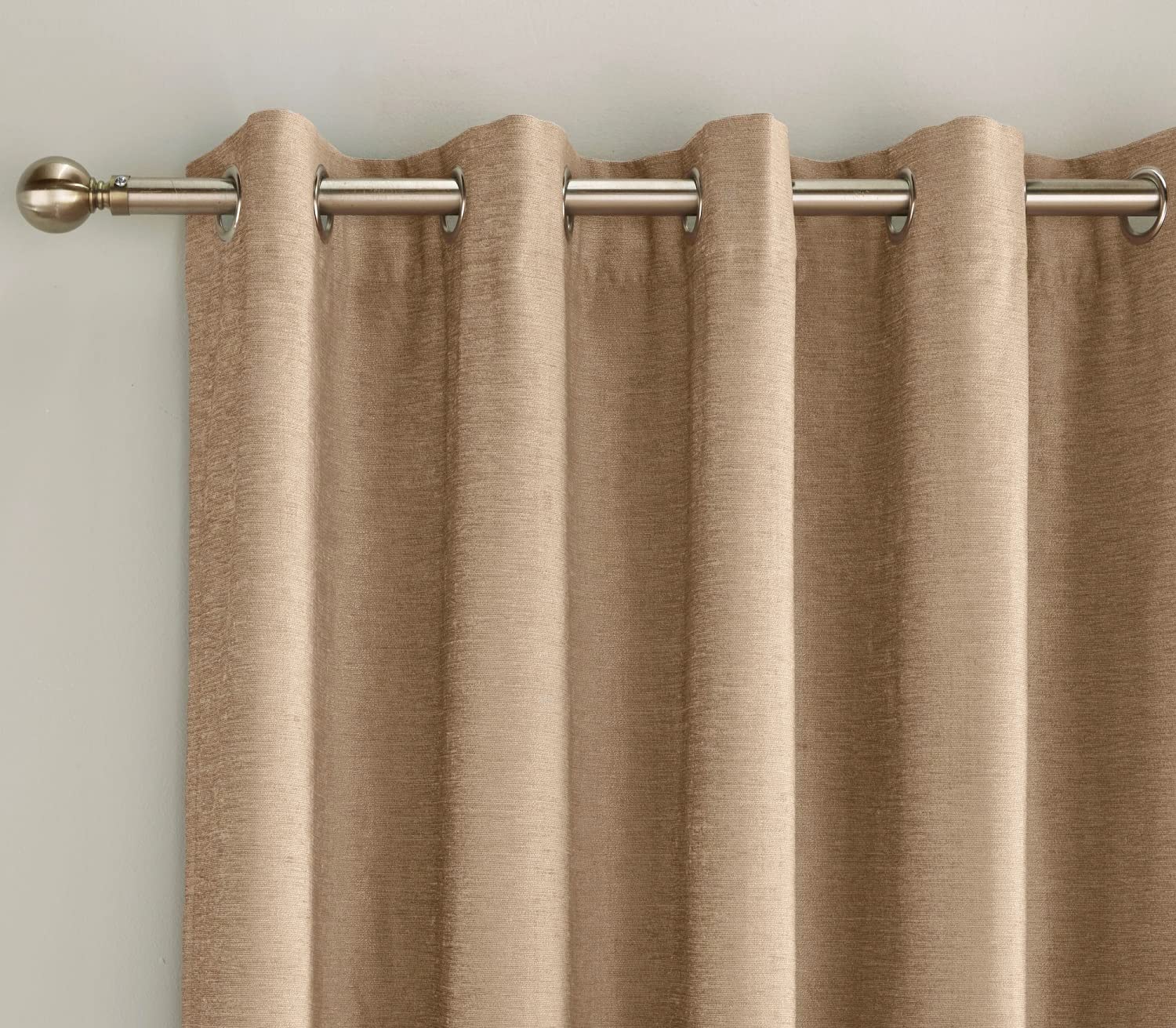 This luxury, high quality, ready-made and blackout eyelet ring top curtains has all over textured print on it with luxurious chenille material. These curtains keep your room dark and cool in the summer, but warm in the winter. These woven blackout curtains have a naturally soft drape and block light from your room, while their superior thermal properties will keep you warm in winter and cool in summer. Material is 100% Polyester, it is hand wash only.