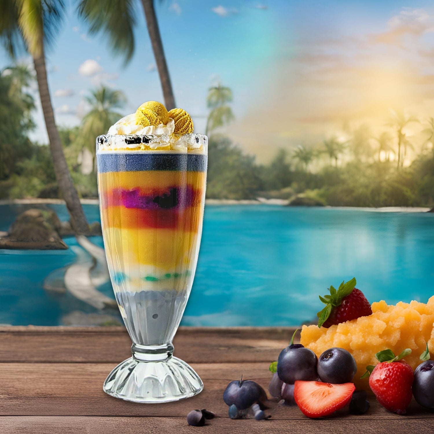 - Due to the clear glass structure, you will be able to see how you place and layer different items such as ice creams, fruits, wafers, sauces and much more.