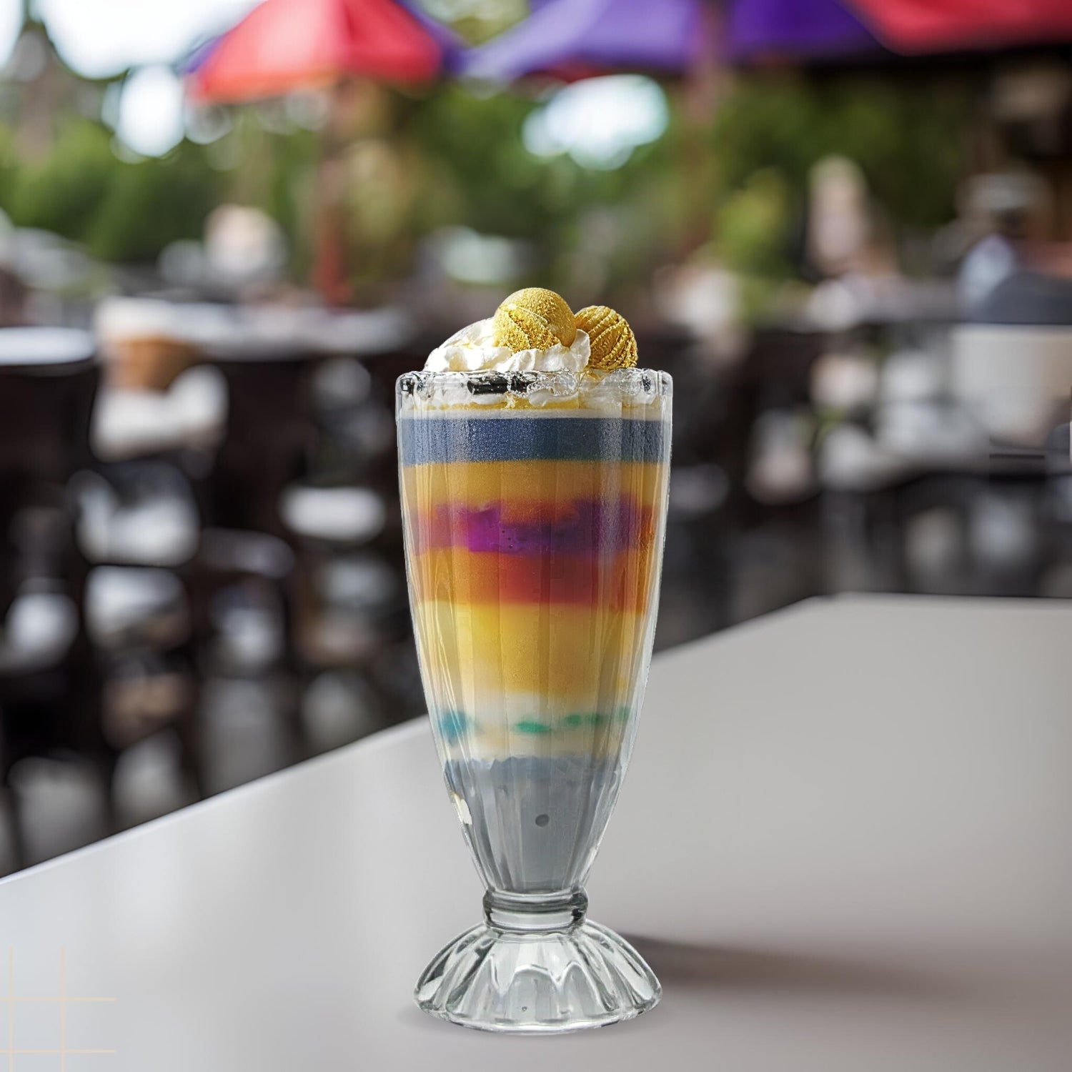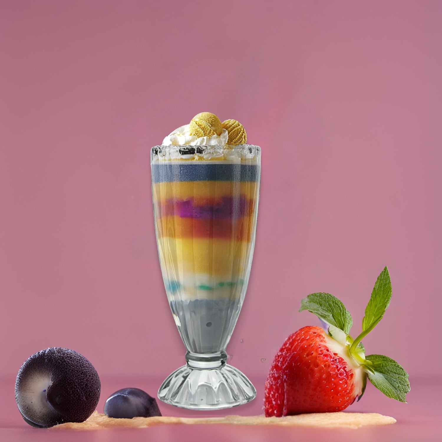 This milkshake/sundae glass is designed for you to serve a range of sweet drinks. Tall 340-ml fountain-style dessert glasses made from thick clear with a secure pedestal base and smooth finish are ideal for serving milkshakes, sundaes, ice creams, milkshake sodas, ice cream floats, smoothies, and many other foods and drinks.