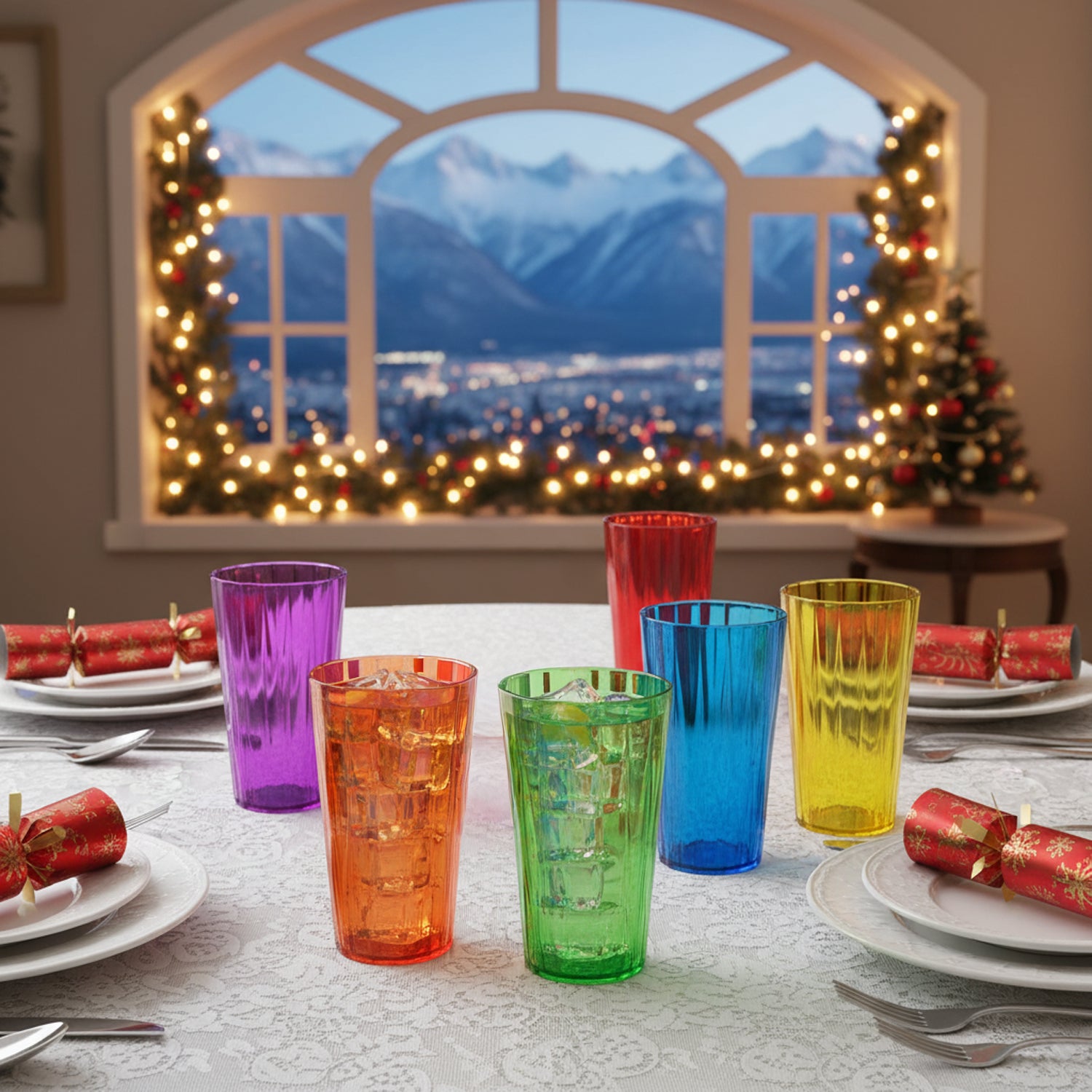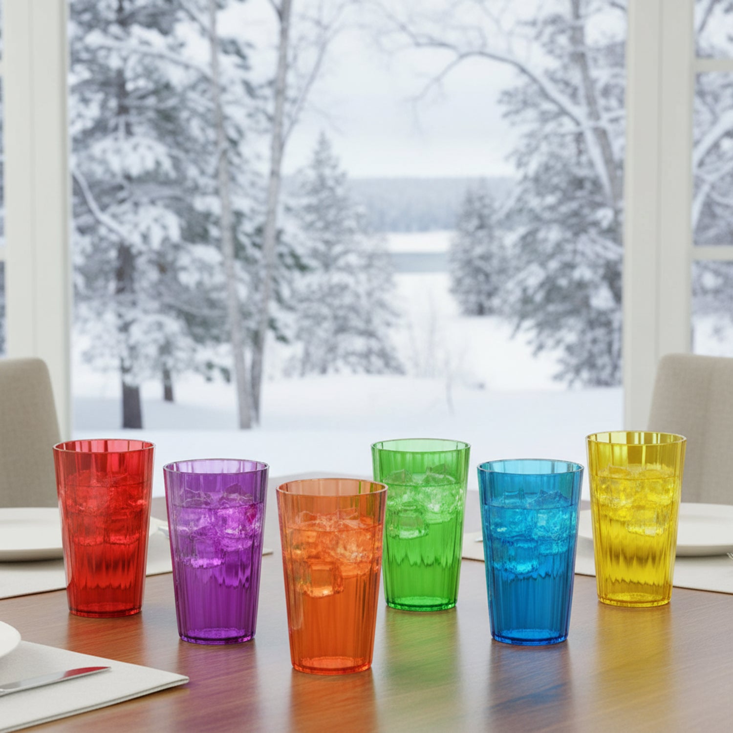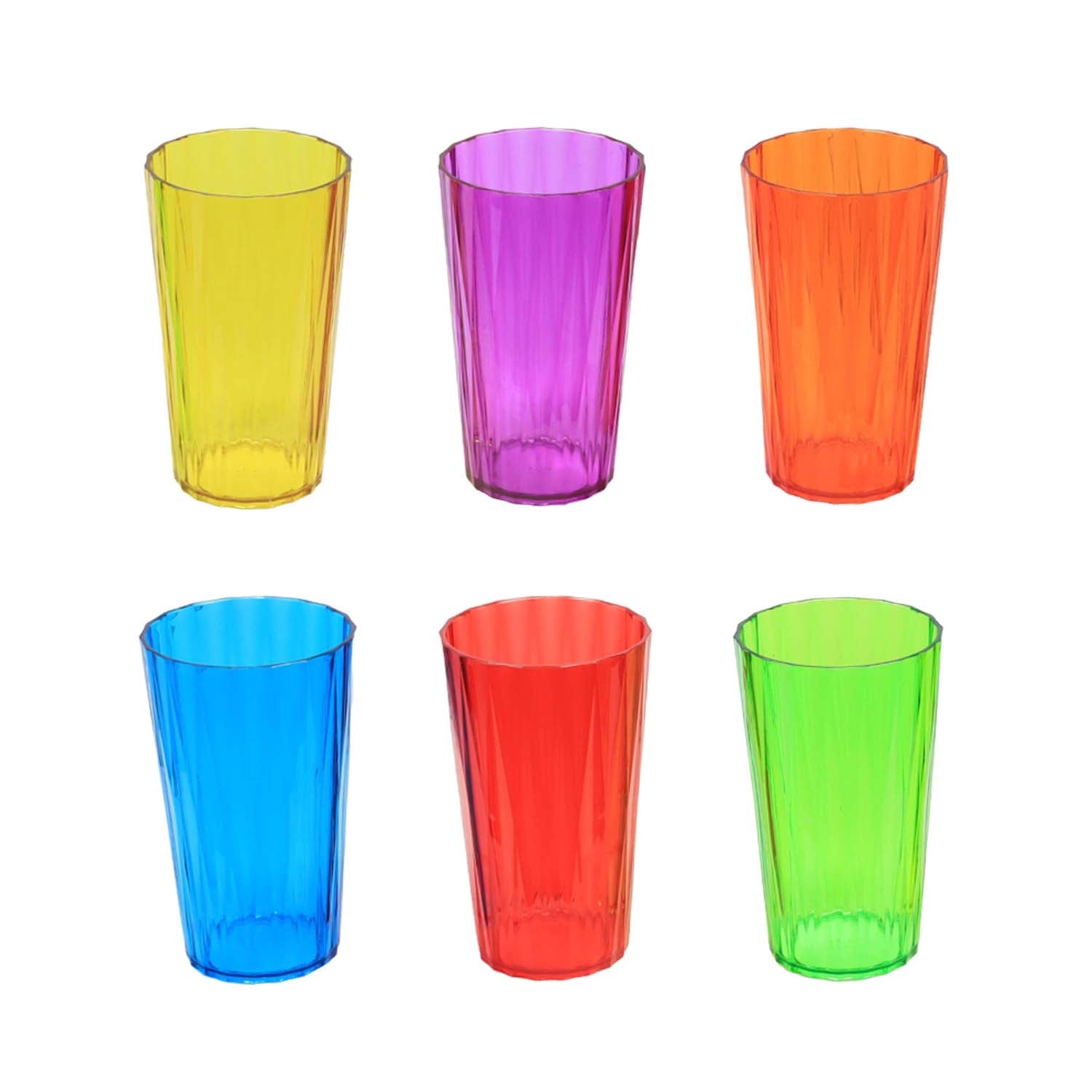 6Pcs 600ml Multicoloured Ridged Reusable Acrylic Tumbler Set