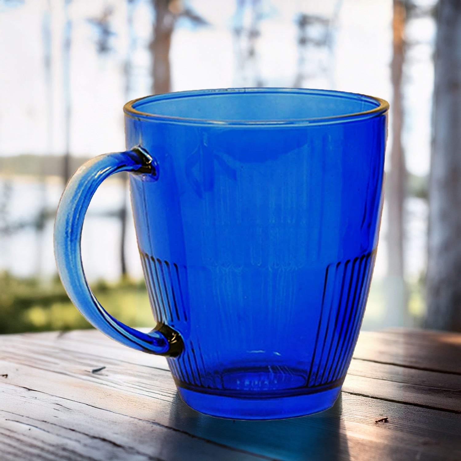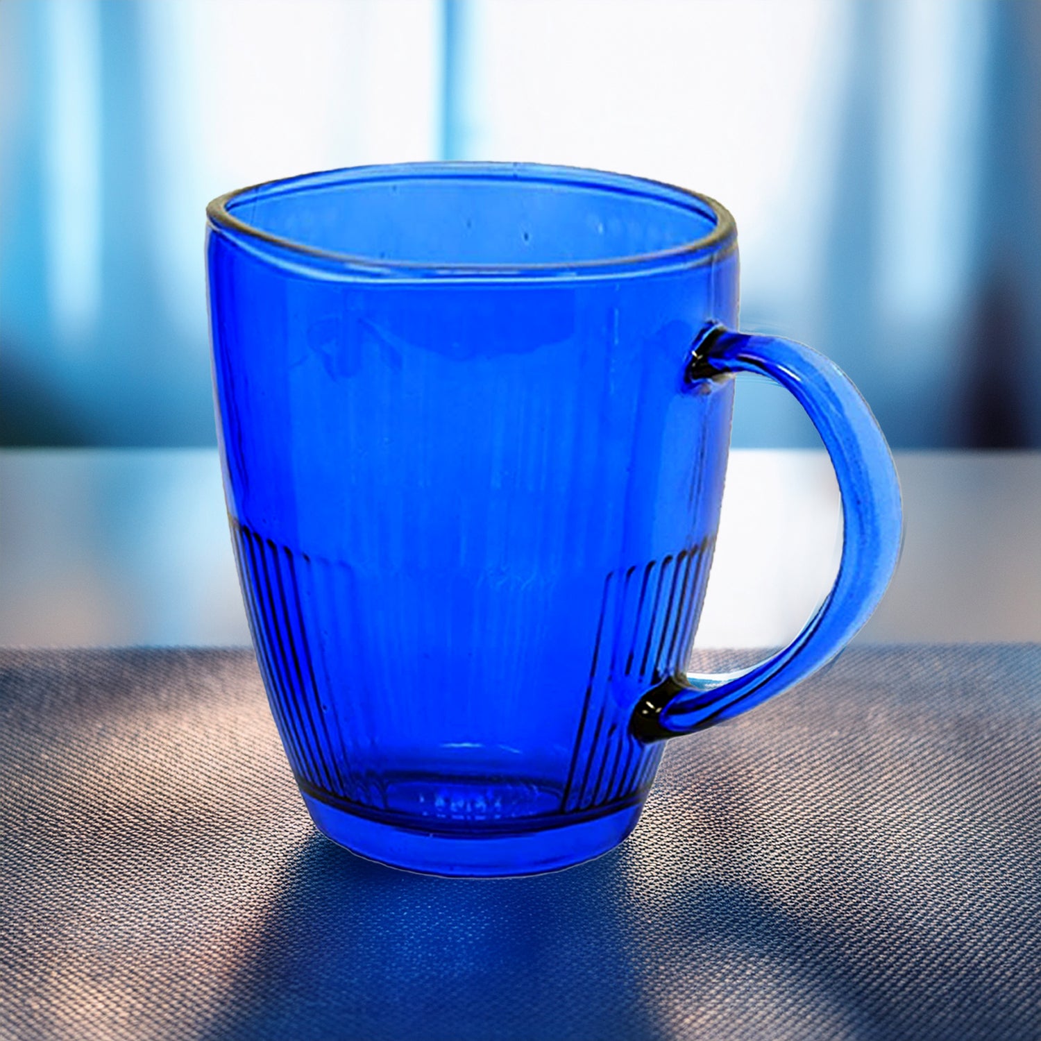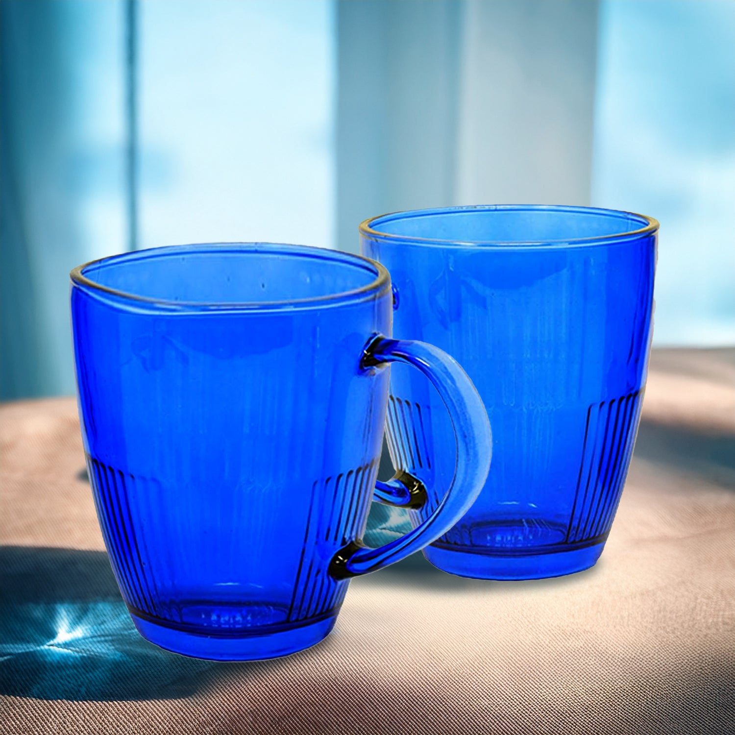 This 350ml coloured glass mug set combines style and durability, perfect for enjoying coffee, tea, or hot beverages. Also available in vibrant red and green colours