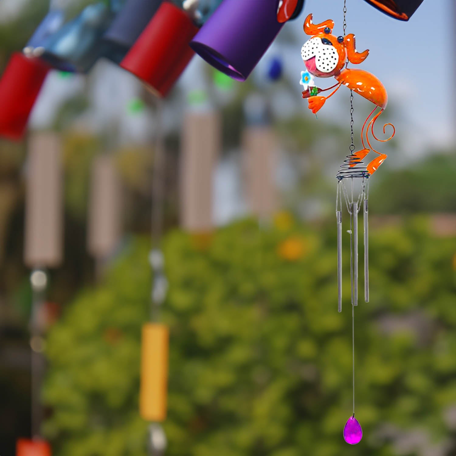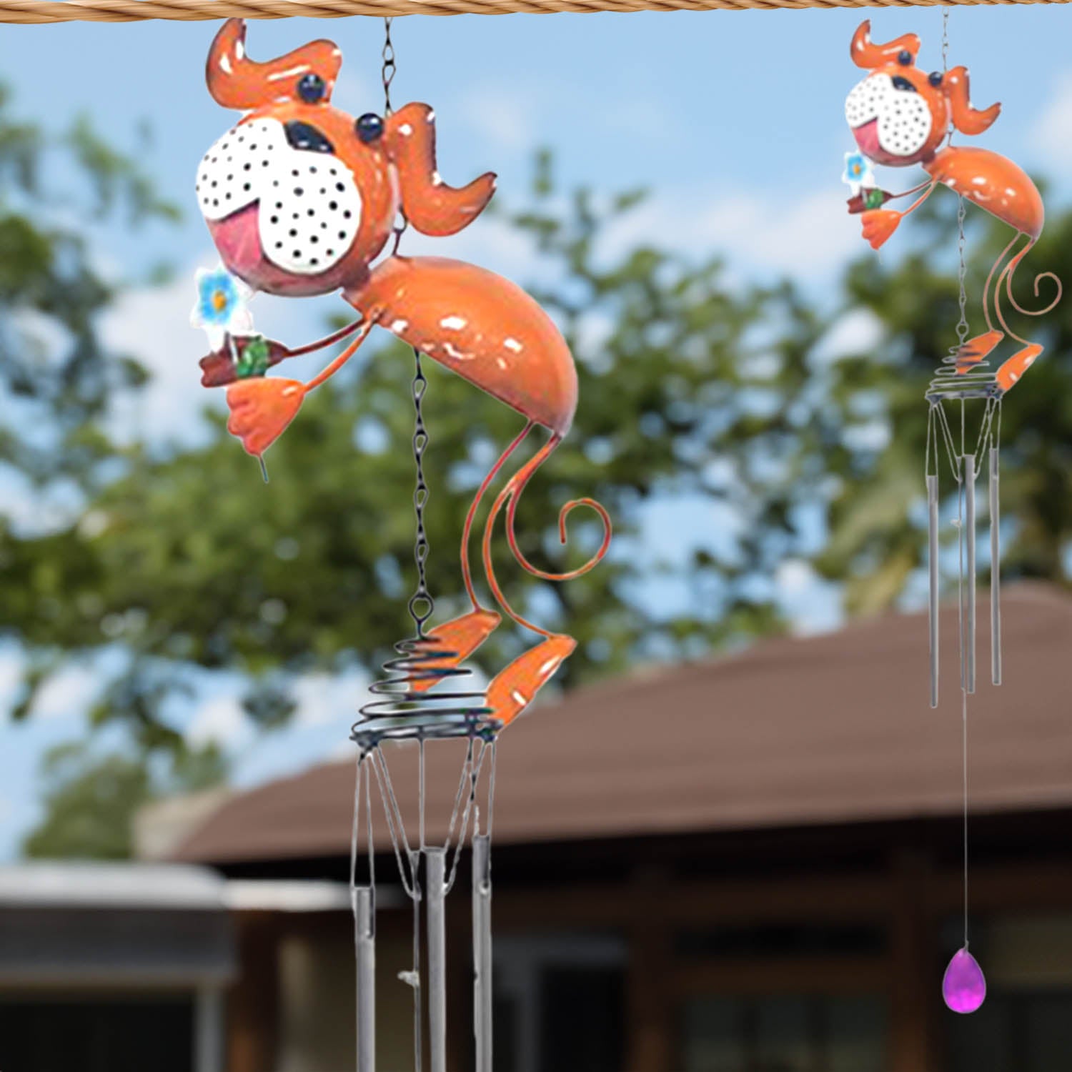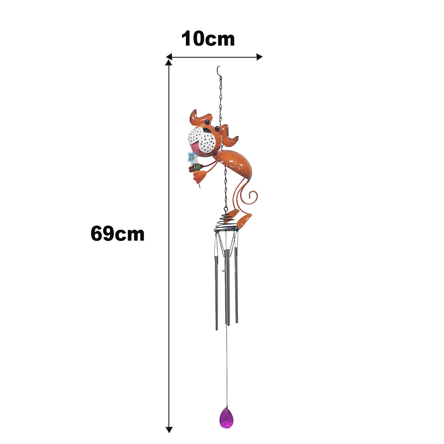 Elevate your outdoor ambiance with our set of 6pc metal wind chimes featuring an adorable brown dog figurine and hanging purple trinket. Easy to hang and designed for durability, this set of six wind chimes is a perfect addition to your garden, patio, or any outdoor space, bringing both visual and auditory delight to your outdoor haven.