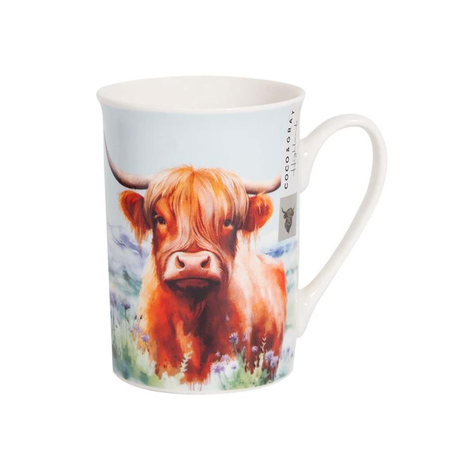 Bring the rustic beauty of the Scottish Highlands to your home with this Coco & Gray 6pc mug set. Made from new bone china ceramic featuring two different artistic designs of the iconic Highland cow, with three mugs for each design. This set is microwave and dishwasher safe, a great collection for any animal lover or country-themed kitchen.