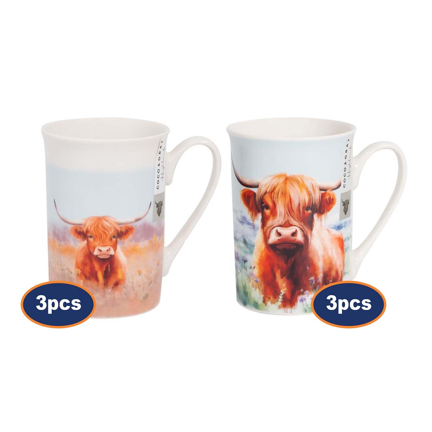 - Features two assorted highland cow designs with three mugs of each design, bringing a touch of countryside charm to your kitchen.