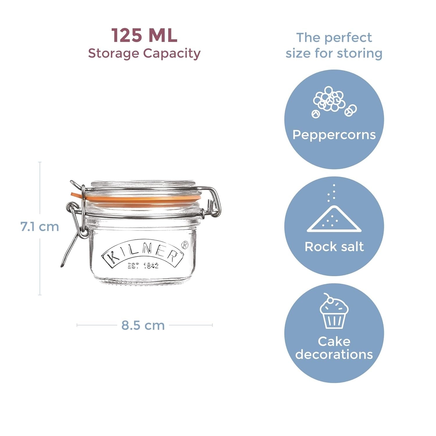 6Pcs Kilner 125ml Mini Vintage Round Clip Top Glass Storage Jar