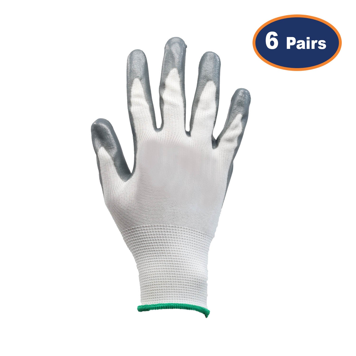 6Pcs Large Size Grey/White Nitrile Flexi Grip Work Gloves