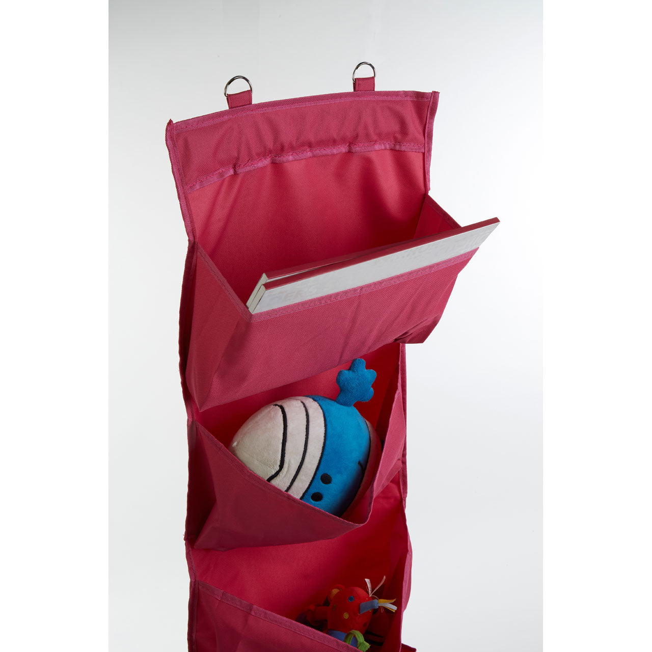 Keep your room clutter free and tidy with the four-tier over-door hanging organizer finished in a flamboyant hot pink. Fitting over most doors, the organizer is made using 100% polyester for a lightweight yet durable storage solution. The four compartments have ample space to store various household items and ensure they are close to hand when required. Ideal for your bedroom, bathroom, or cupboard, the hot pink over-door organizer is a simple and effective way to ensure your home is always presentable.