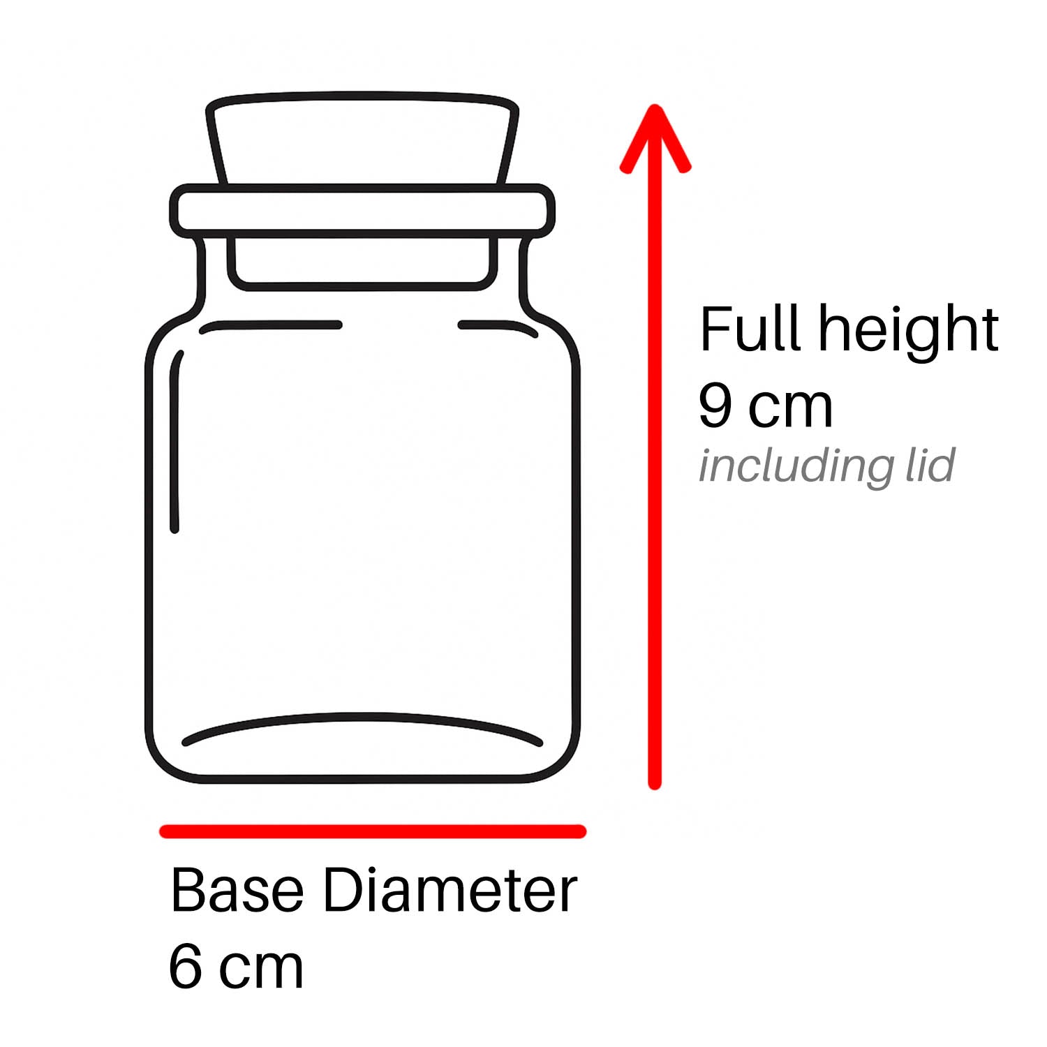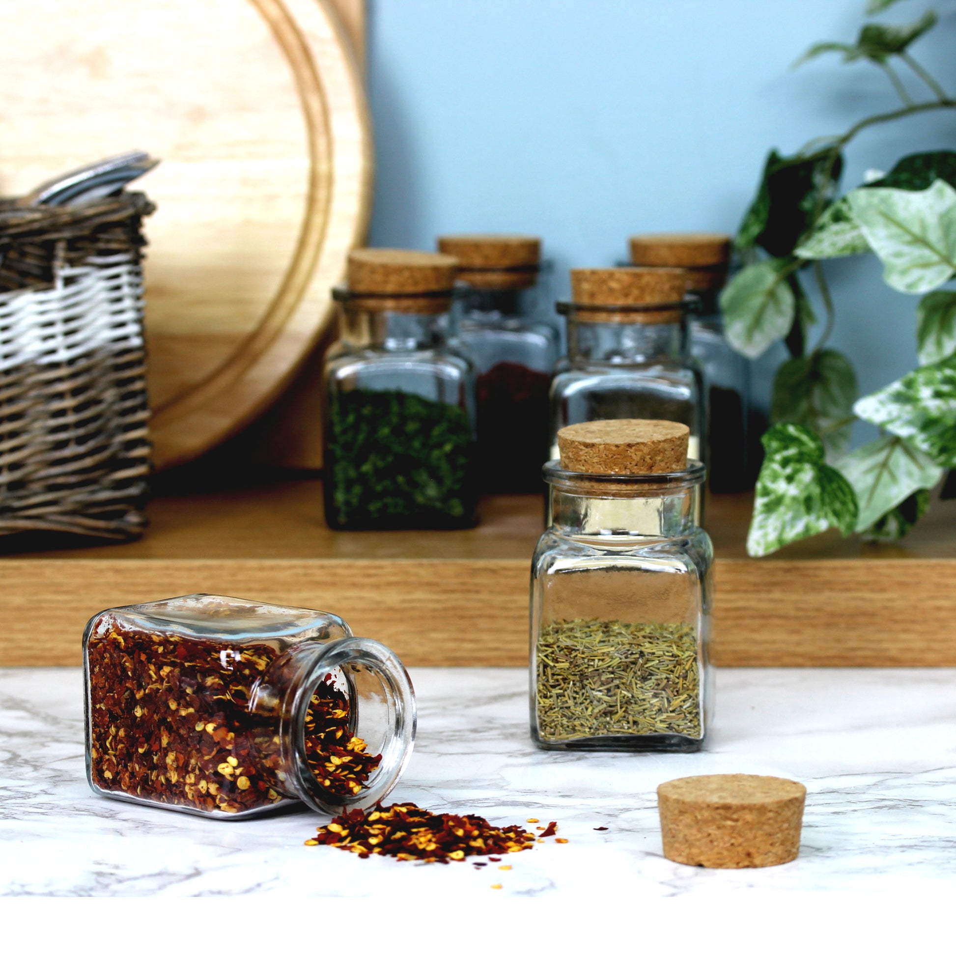 Made from robust glass, this set of 6 storage jars can be used to store a variety of kitchen items. Each wide-mouthed jar has a cork stopper which will keep contents fresh for longer and preserve odors. Approx. Product Dimensions: H10 x W6 x D6cm.