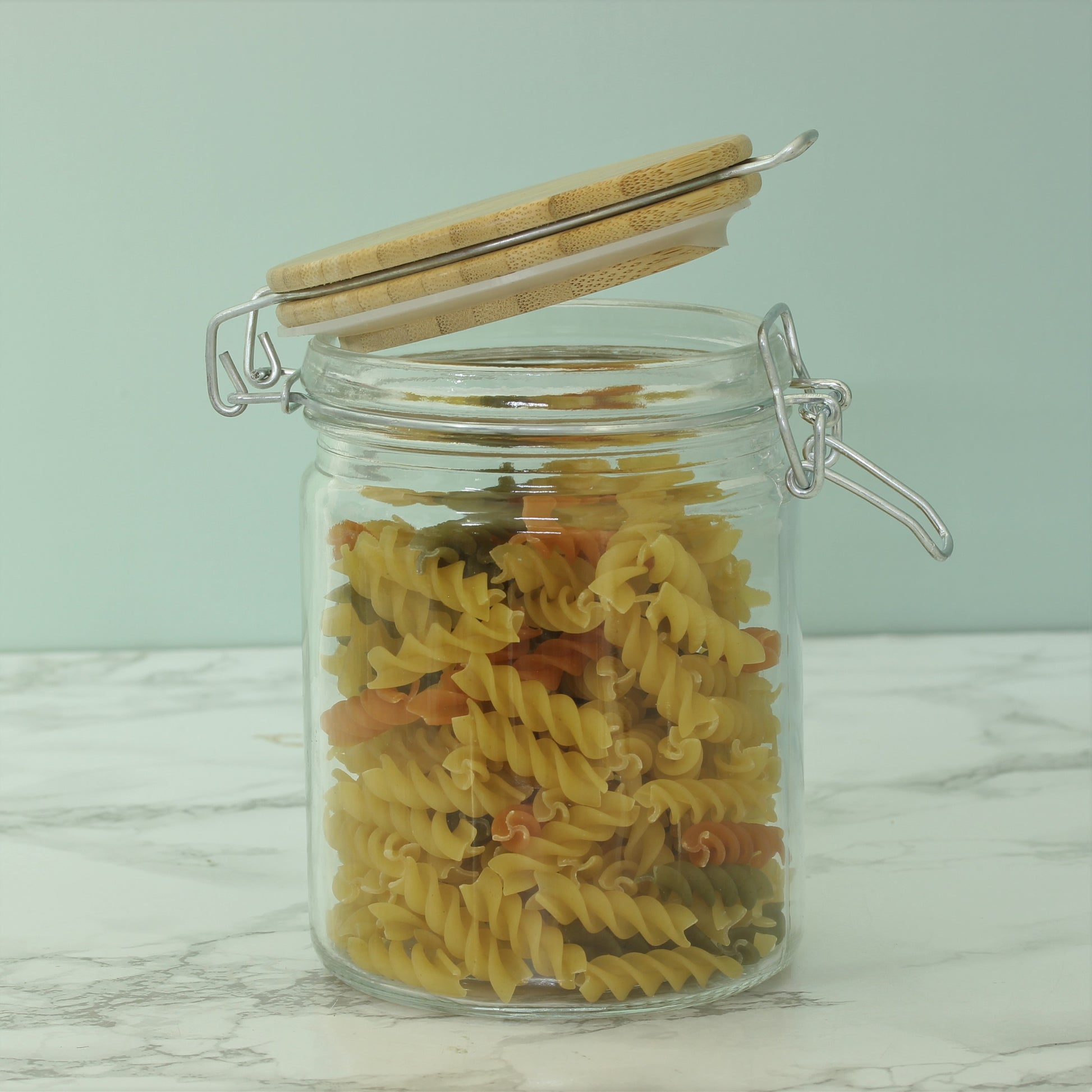 This tall glass jar is ideal for storing your favourite pasta and dried foods. The glass jar is a tall cylindrical shape and is made from strong and heavy glass. The lid is made from wood with a classic clip top structure to provide airtight storage to ensure maximum flavor and freshness is preserved.