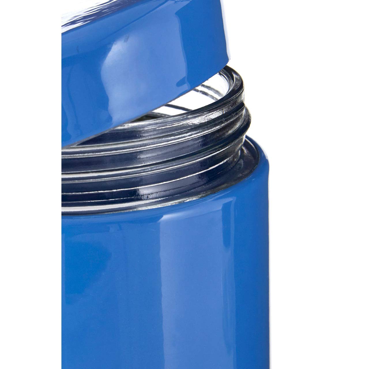 This glass jar's screw-on lid creates a tight seal, making it suitable for extending the shelf life of dried food. Its blue finish coordinates with the steel that covers the upper section, the lower section is left exposed to make it easy to check when its contents are running low. With an 800ml capacity, it's ideal for storing coffee, pasta, or rice.