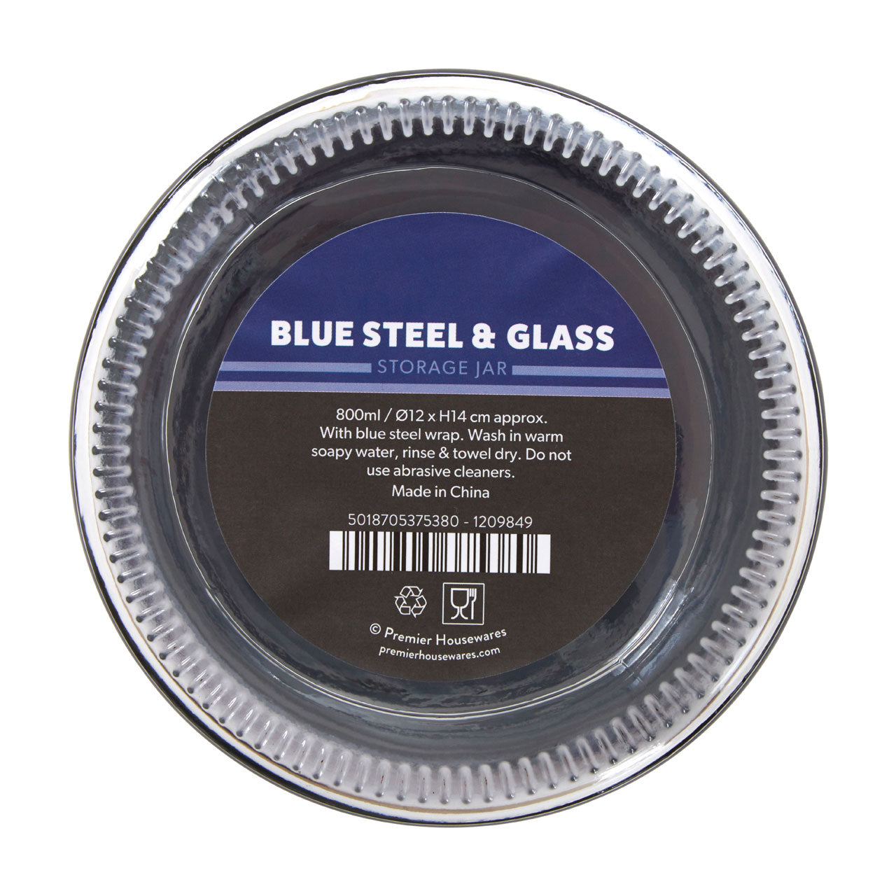 800ml Blue Stainless Steel Glass Storage Jar