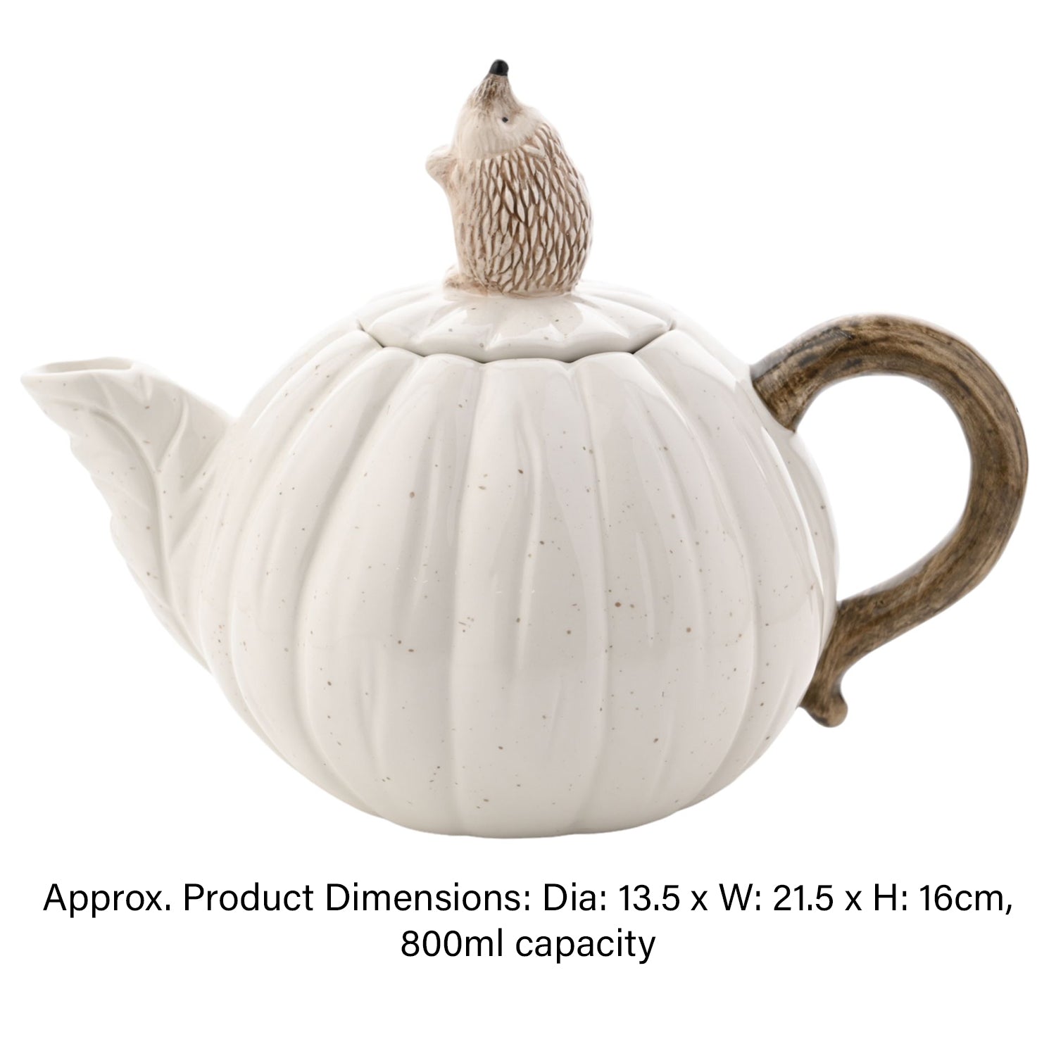 800ml White Ceramic Autumn Decor Pumpkin Shaped Teapot With Hedgehog Design Lid
