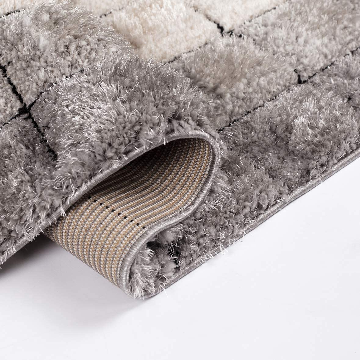 80x150cm Grey Geometric Shaggy Velvet Square Rug