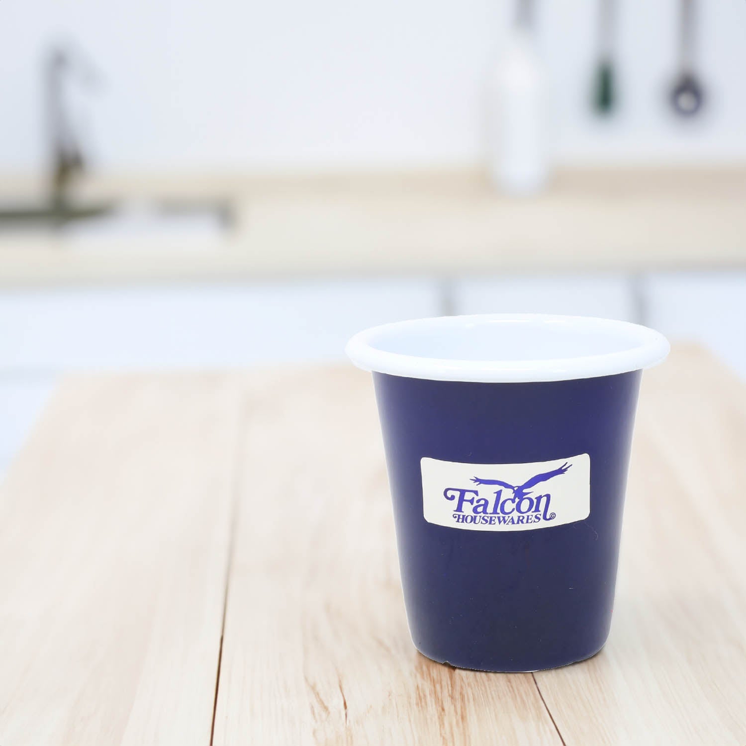 8cm Blue Enamel Tumbler with White Rim