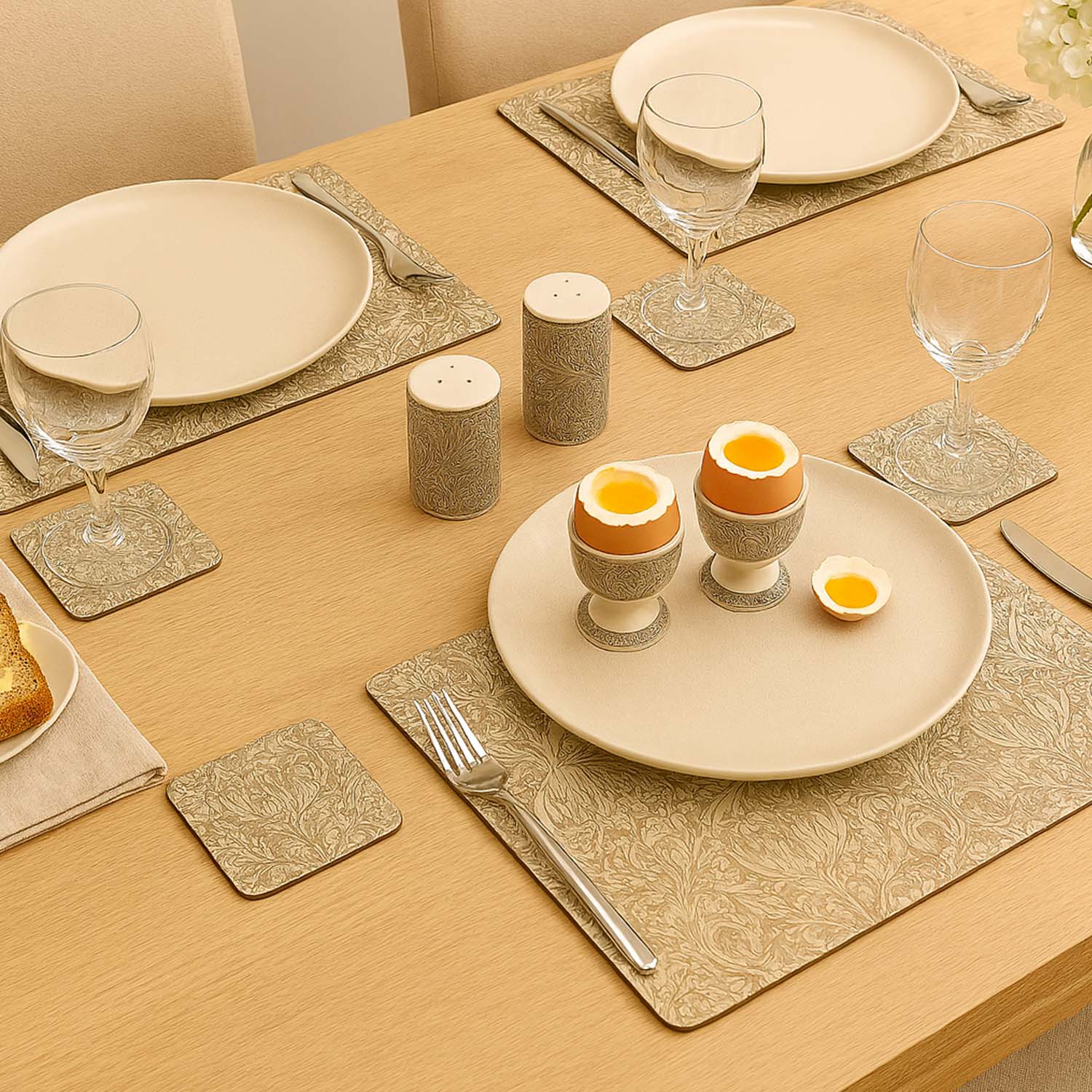 8Pcs W. Morris Artichoke Cork-Backed Placemat & Coaster Set