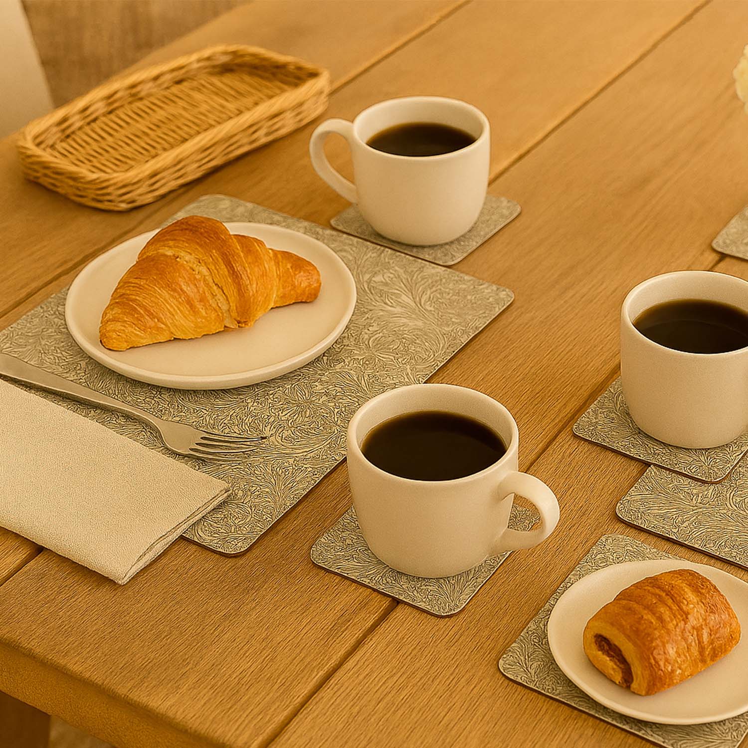 - Approx. Product Dimensions: Placemats - L: 29cm x W: 22cm (each) / Coasters - L: 11cm x W: 11cm (each)
