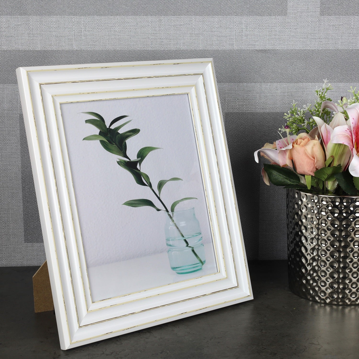 8x10in Antique White Free Standing Photo Frame