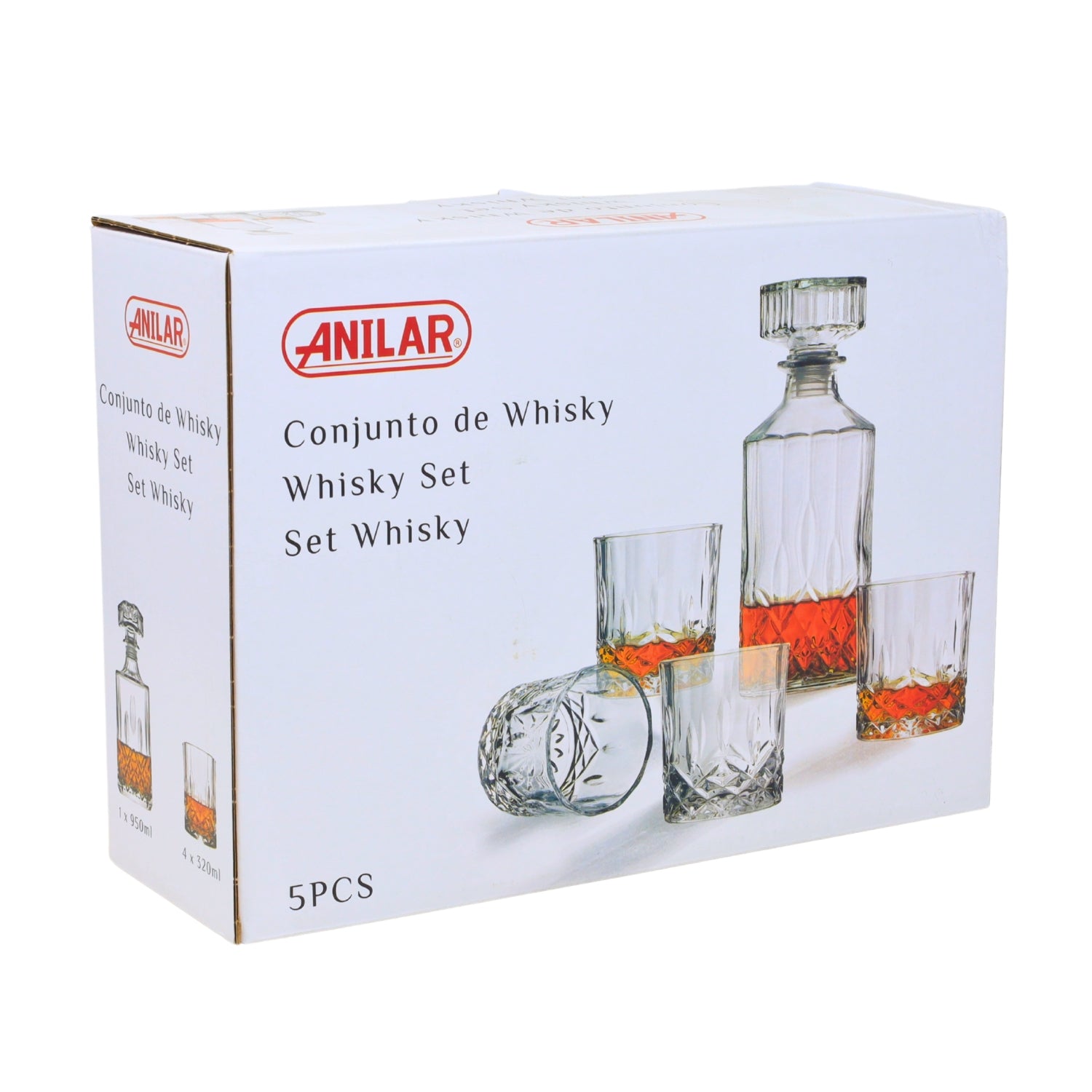 - Includes 1 decanter (900ml) and 4 whisky glasses (300ml each)
