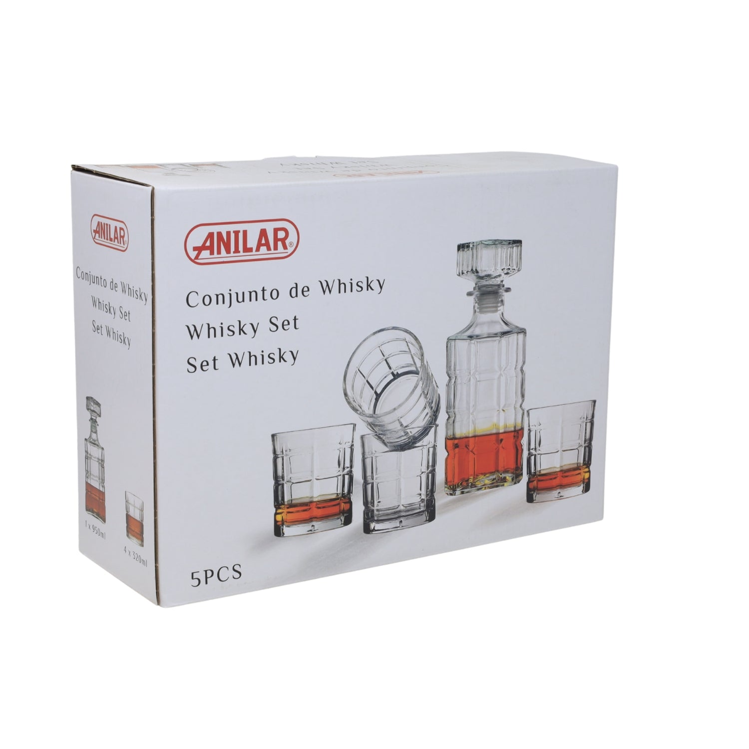 - Includes 1 decanter (900ml) and 4 whisky glasses (300ml each)