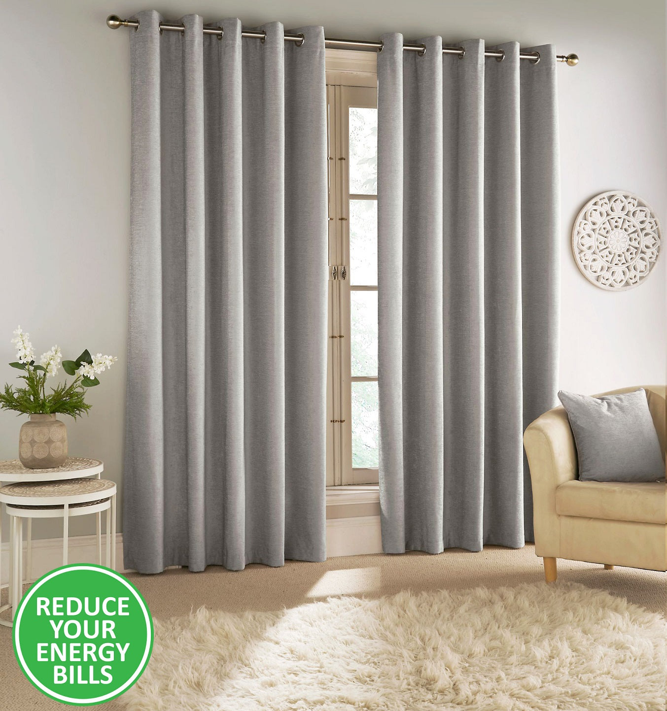 The set contains a pair of eyelet ring top lined curtains, each curtain size is 229cm x 229cm (90" x 90")(Approx).