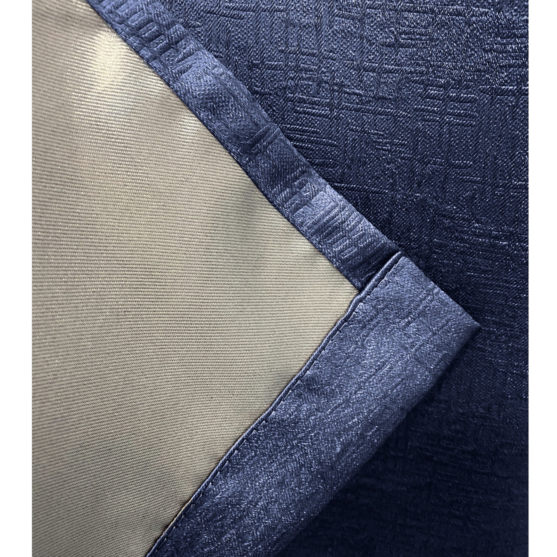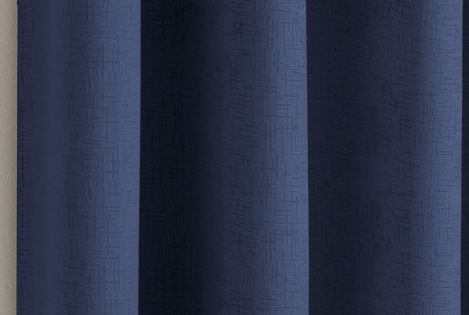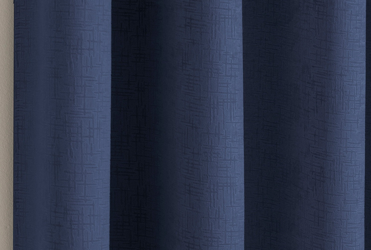 A Pair of Textured Thermal Blockout Lined Eyelet Ring Top Ready-Made Curtains 90x90" - Navy Blue