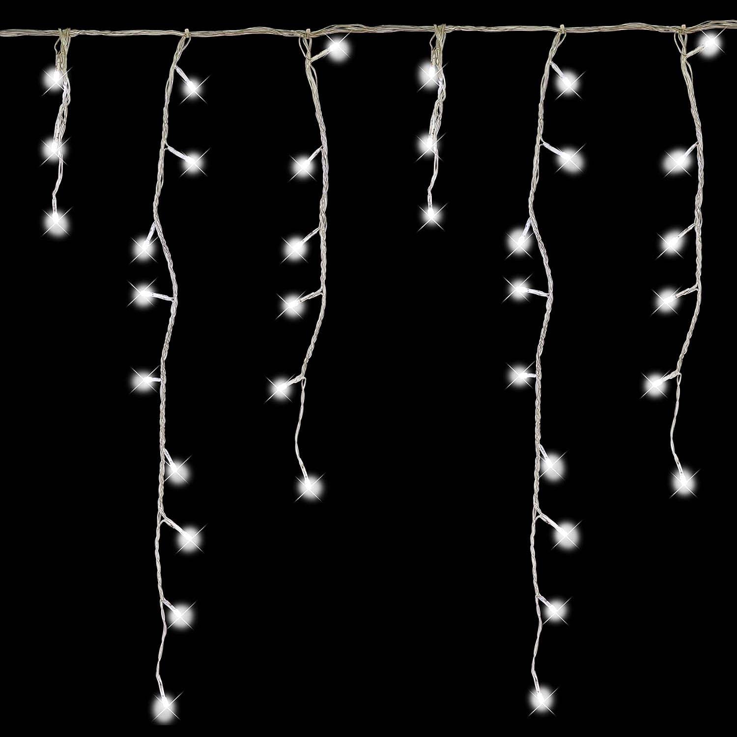 Create a shining appearance that will grab everyone's attention on all occasions! With 8 functions. Indoor and outdoor use. This 960 LED icicle lights white is perfect for home decoration.