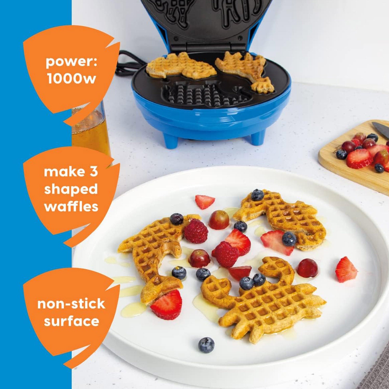 - Creates 3 fun animal-shaped waffles in one go.