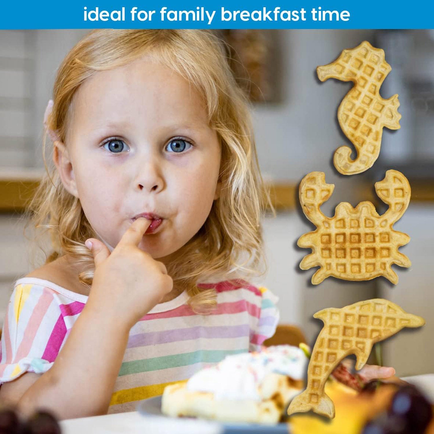 The Animal Planet Sea Life 3-in-1 Waffle Maker is a fun and practical way to prepare delicious treats for the whole family. Designed with non-stick plates, it makes three sea creature waffles at a time, ensuring quick cooking and easy cleanup. Perfect for breakfast, snacks, or entertaining children with creative, animal-themed waffles.
