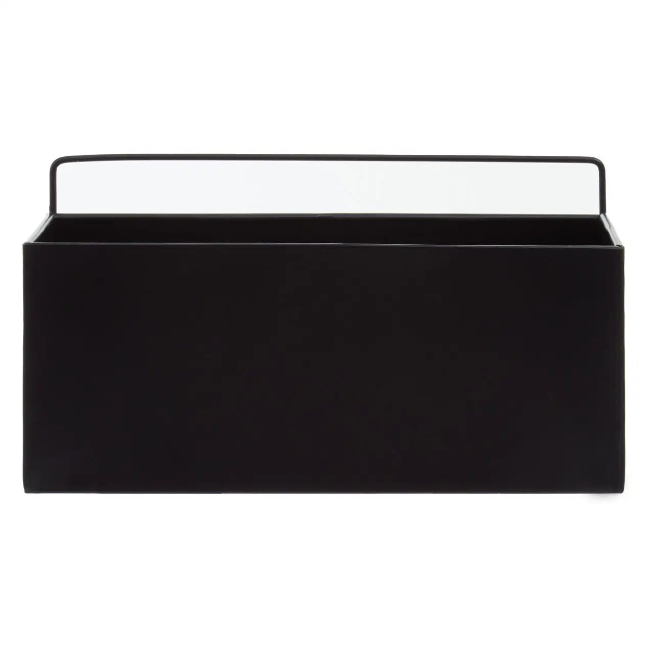 Crafted from durable iron with a sleek black finish, this wall plant box boasts a rectangular shape and an integrated handle for secure hanging on balconies or walls.