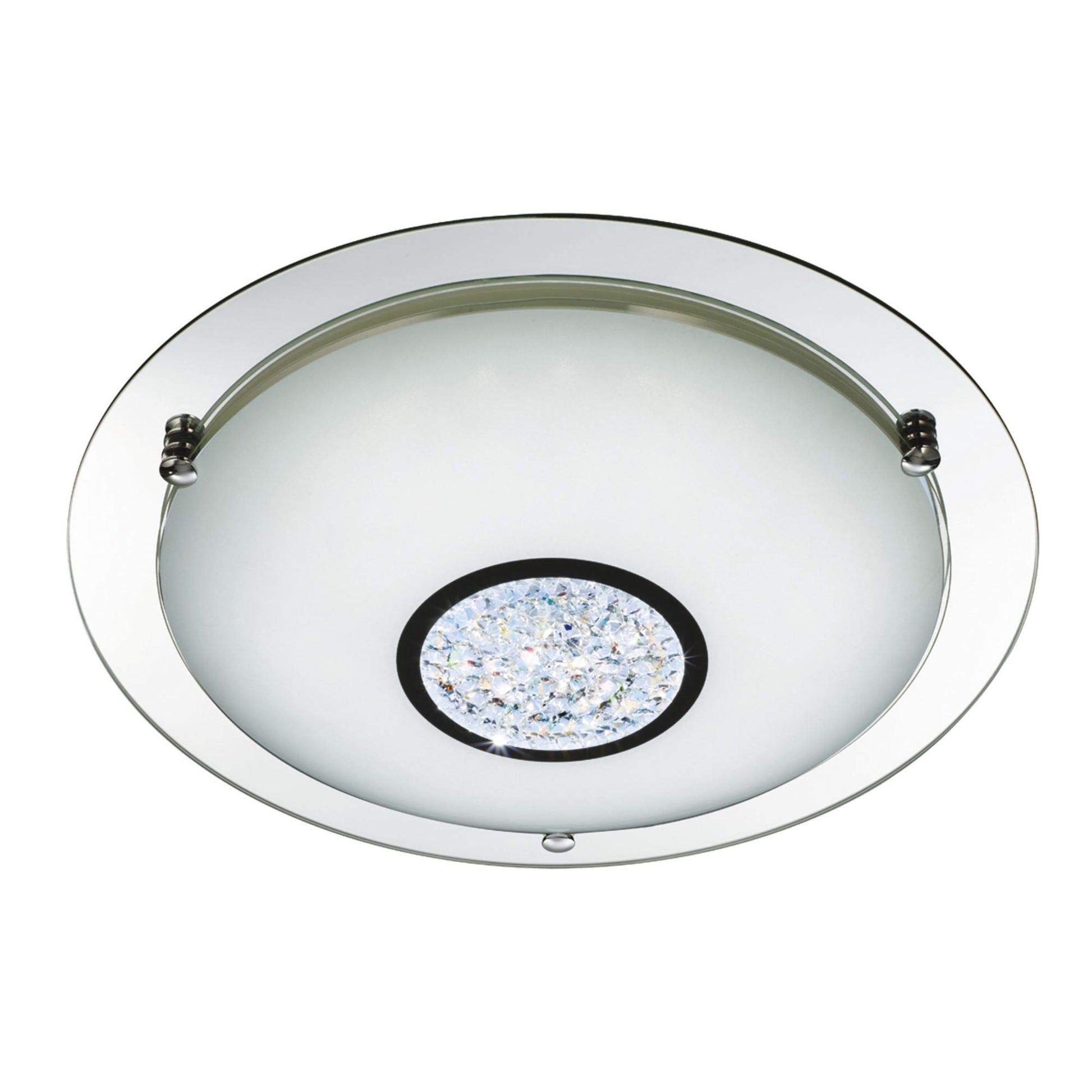 - Bathroom ip44 LED flush (dia 42cm) chrome, mirror halo, wht gls shade, crystal inner deco