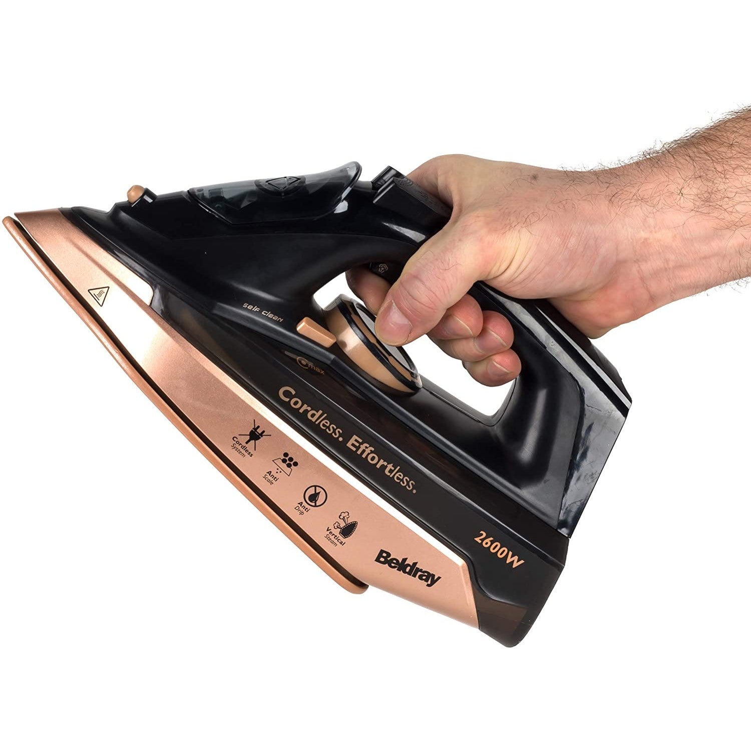 - This Beldray 2 in 1 Steam Iron can be used as a corded or cordless iron, simply slide into the stand to quickly recharge between items