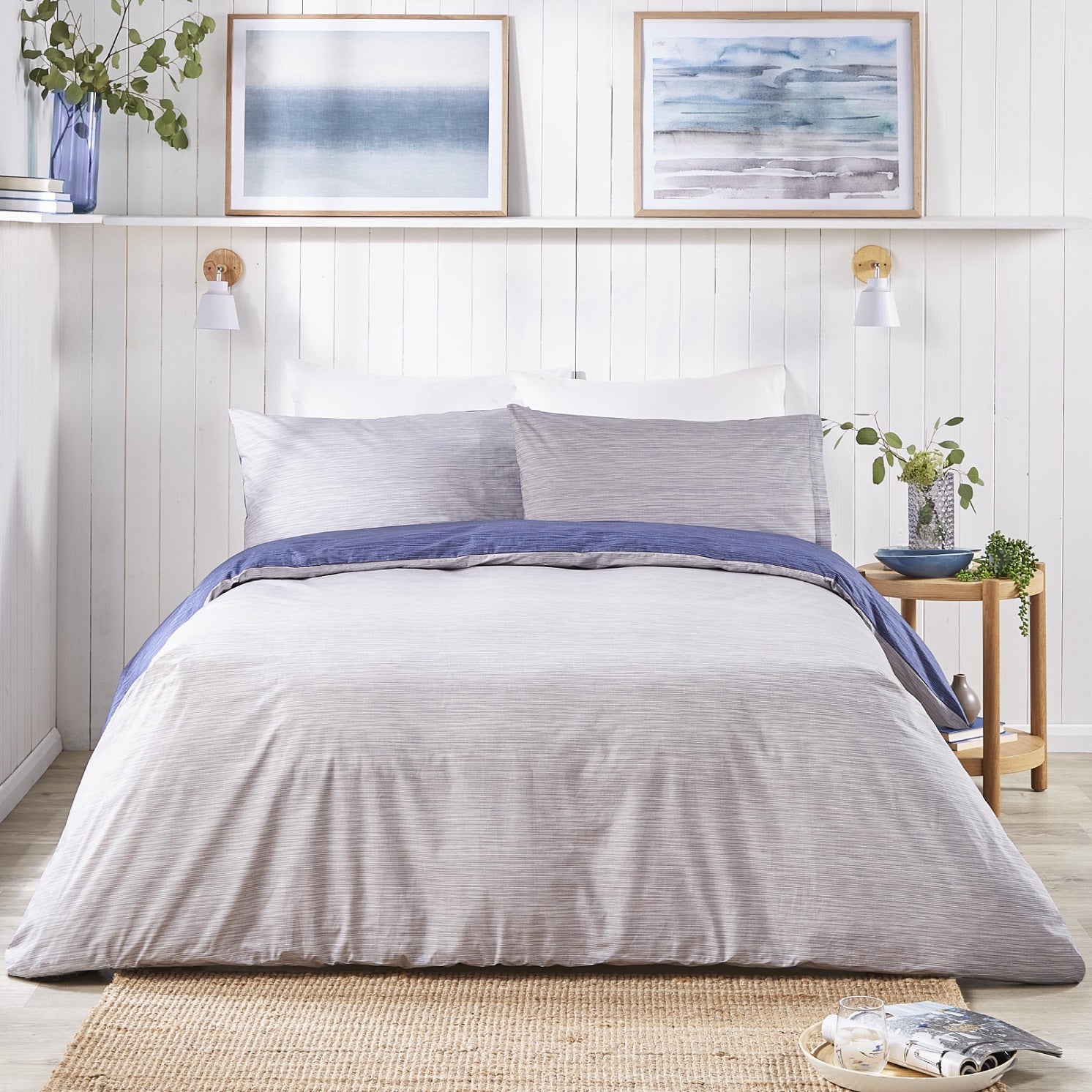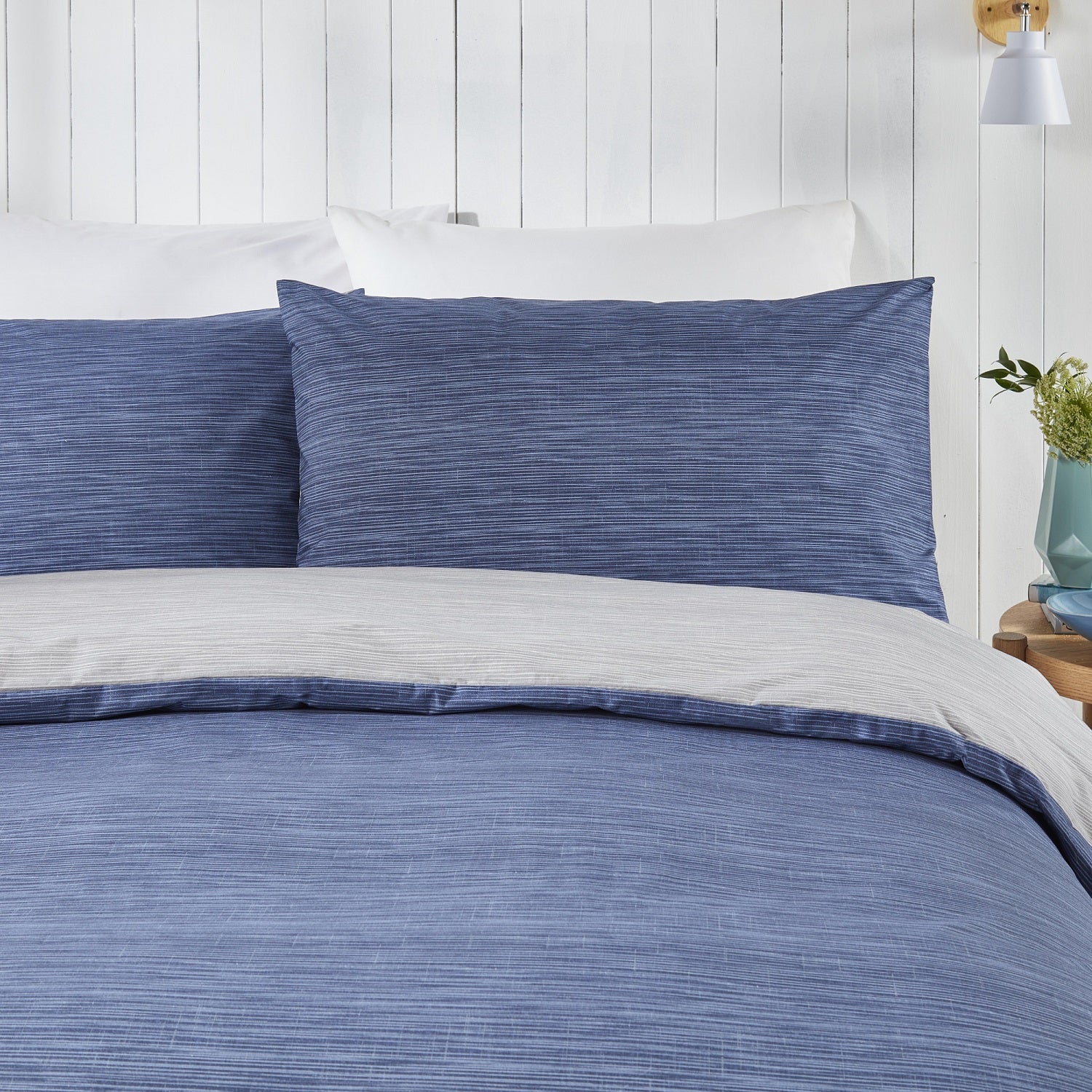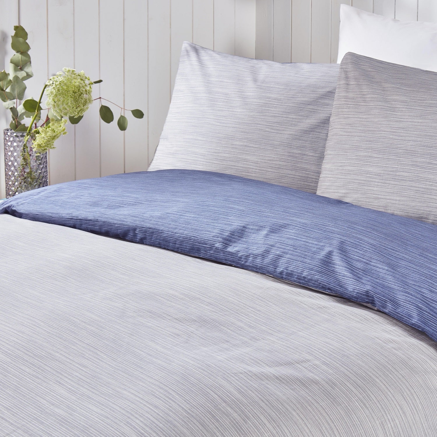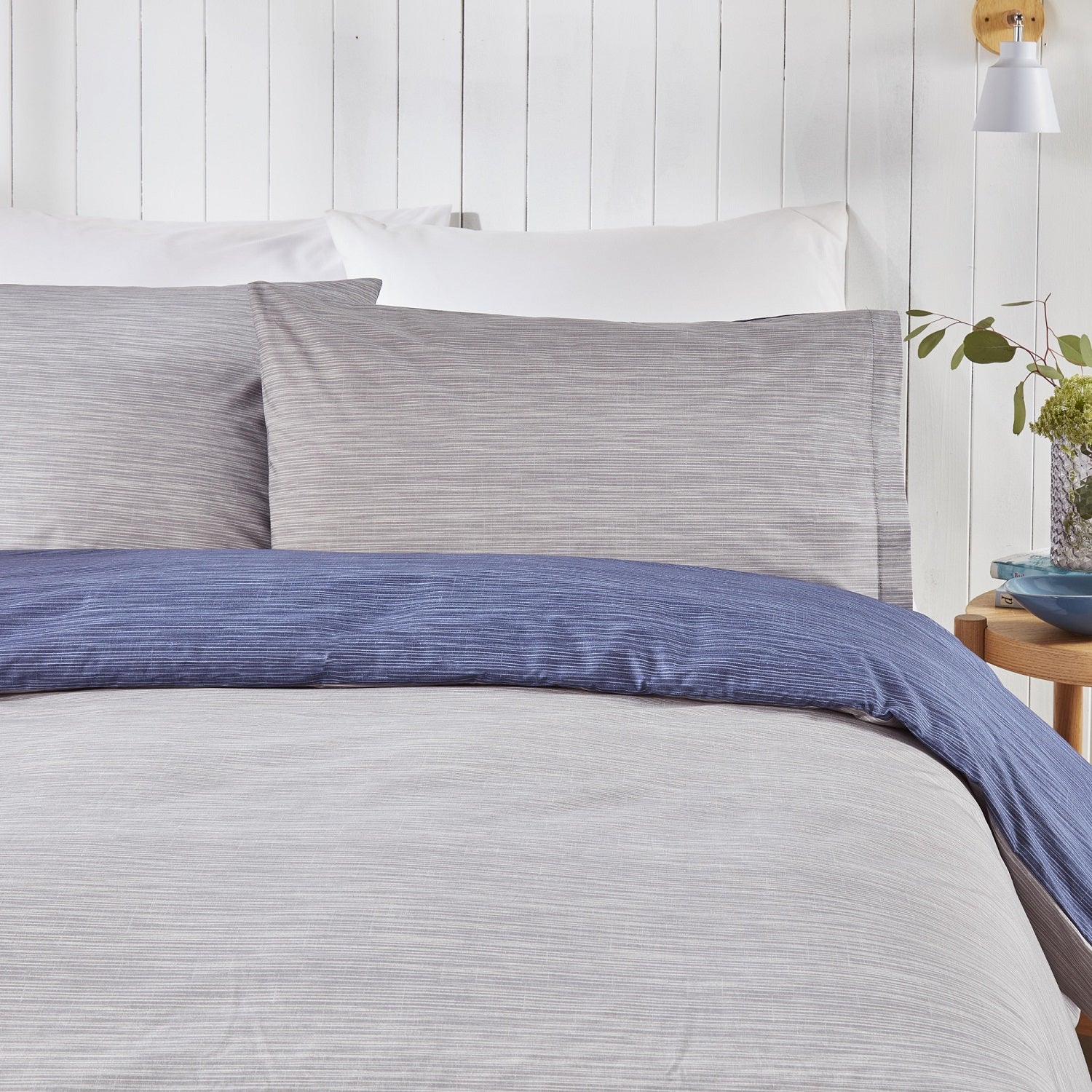 Bethan Striped Double Duvet Cover Set - Navy & Grey