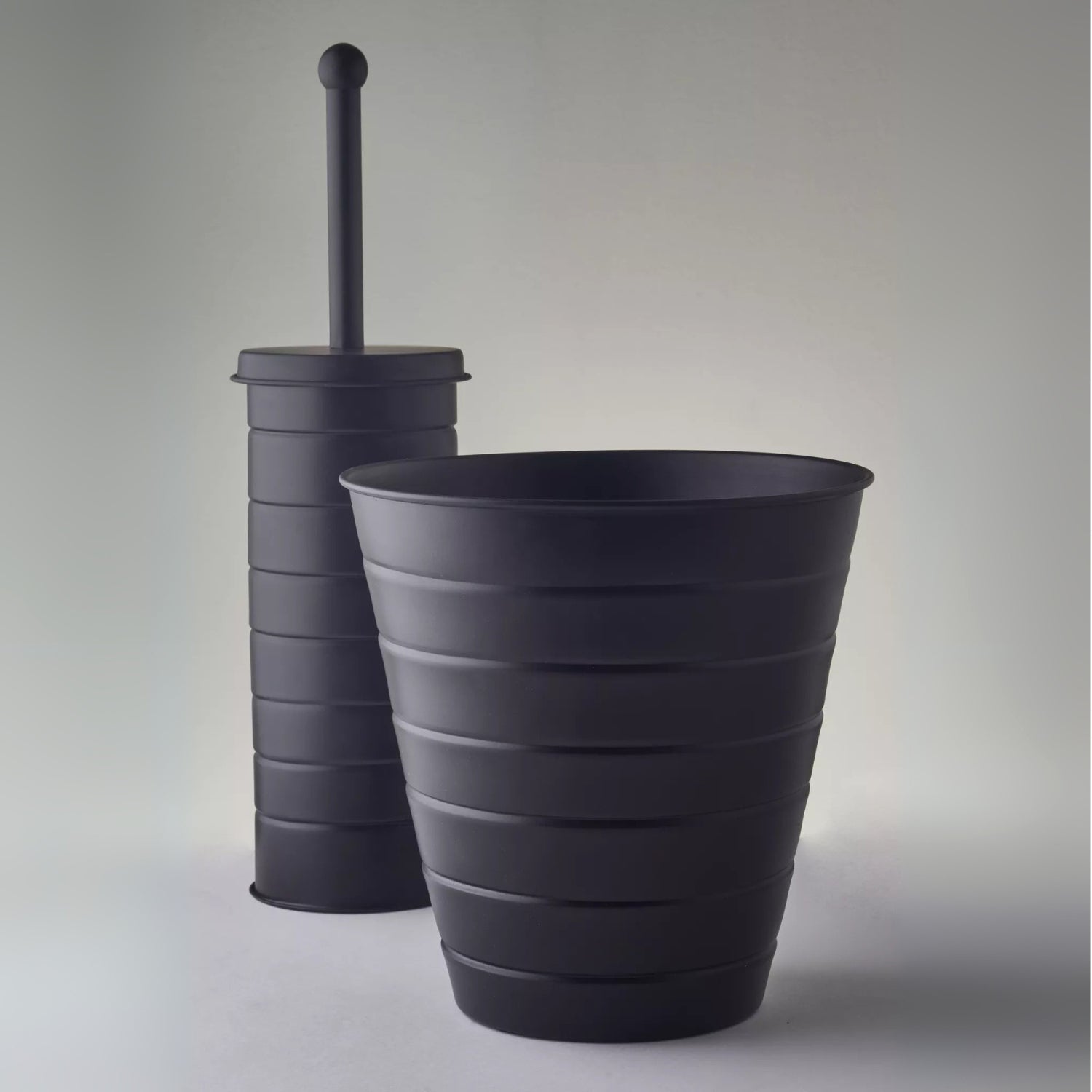 Black Toilet Brush With Lid Holder & Bin Set