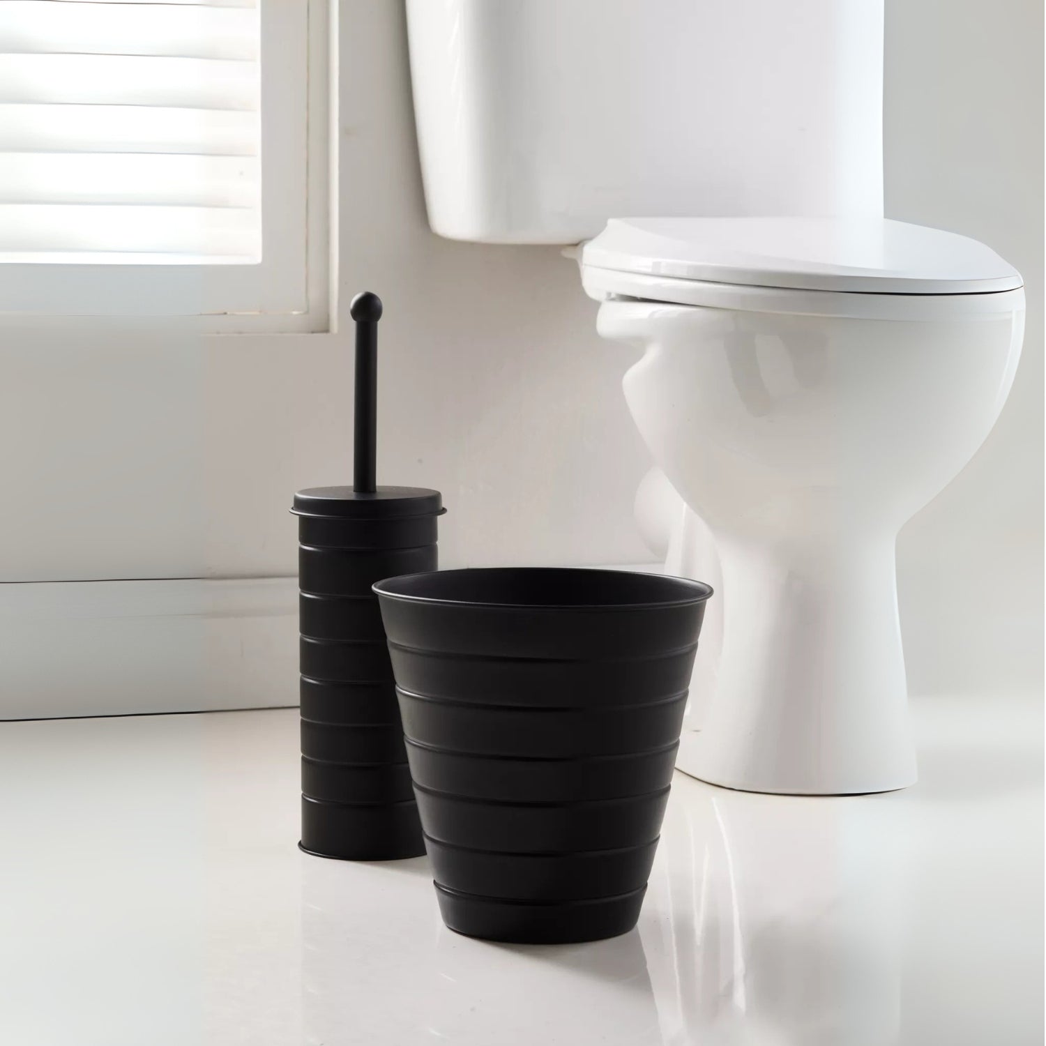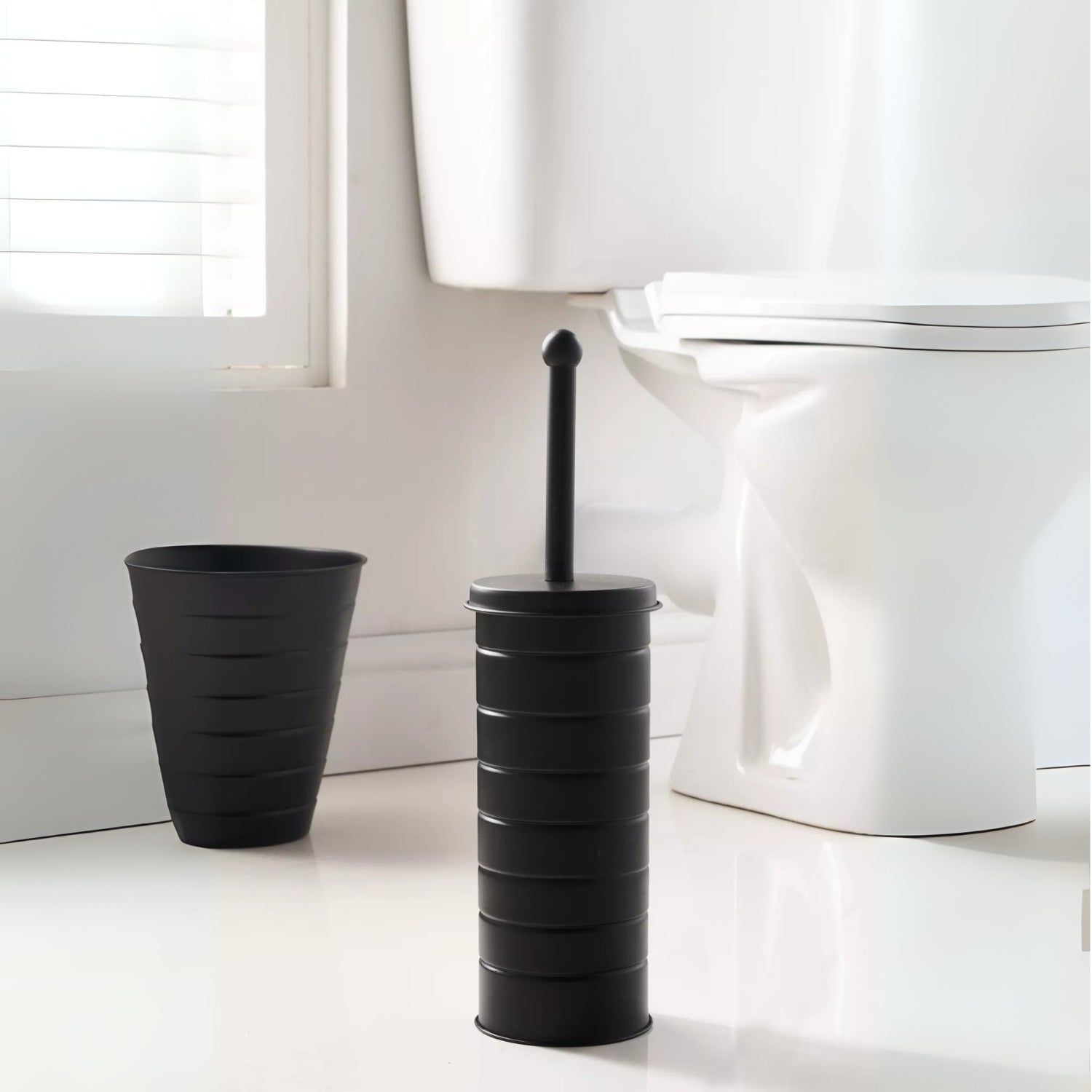 Add sleek functionality to your bathroom with this toilet brush and bin set. Both pieces are easy to clean and require no assembly. This matching set offers both style and practicality, making it ideal for any contemporary bathroom.
