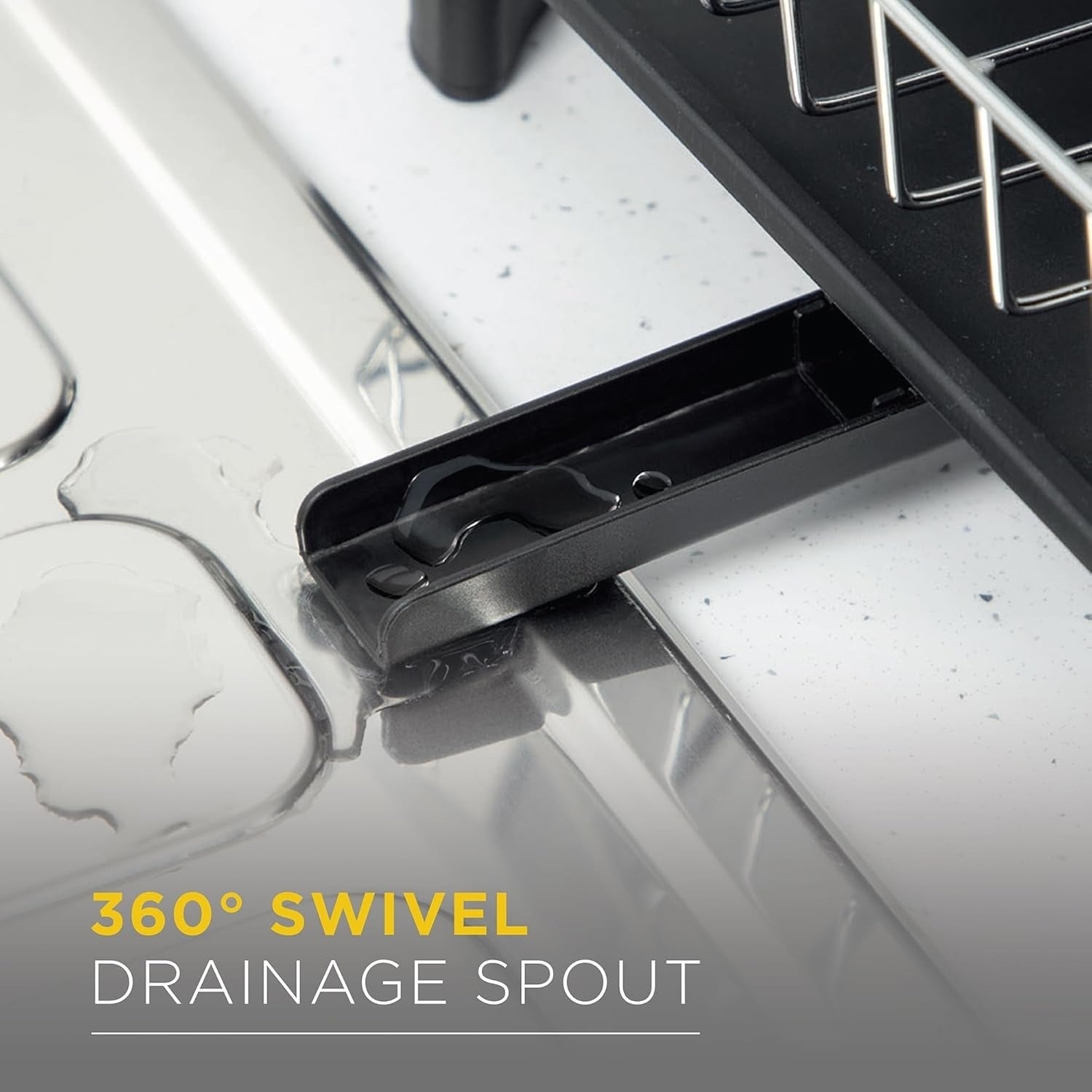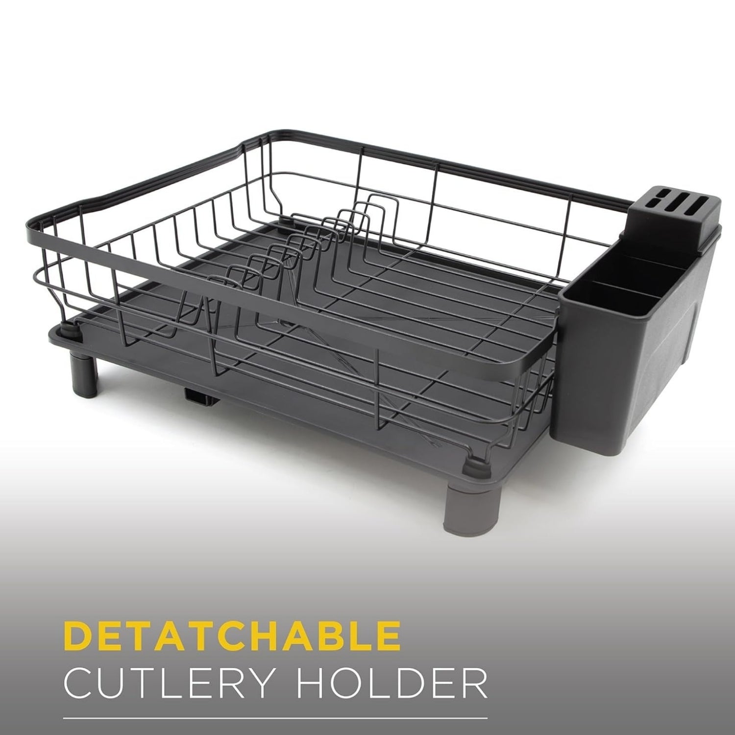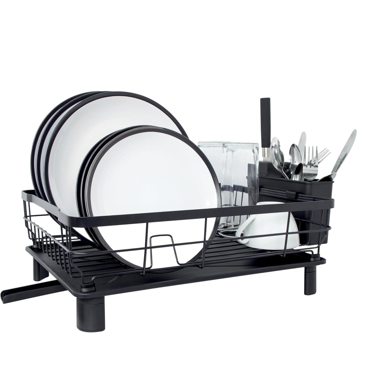 Keep your washing-up area neat with the stylish Blackmoor Dish Drainer in black. Designed with a durable iron frame and powder-coated finish, this drainer includes a removable plastic drip tray, knife slots and cutlery holders for quick and easy cleaning. Perfect for modern kitchens, it combines practicality with a sleek, space-saving look.