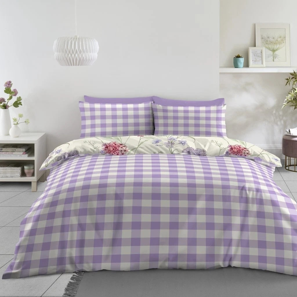 Botanical Spring Gingham Duvet Cover Set, Double, Lilac