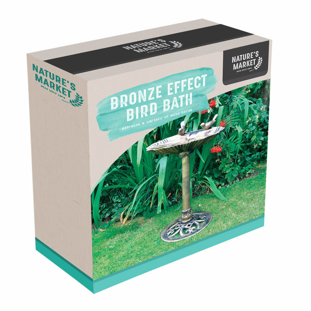 Made from weatherproof plastic, the fountain is durable and sturdy yet lightweight and easy to maintain. Adding a birdbath to your garden will attract a vast array of wild birds, including bluebirds, robins and thrushes. Many birds struggle to find fresh water so by providing clean, fresh water for birds to drink and bathe in you're not only helping our wild birds, but also creating a lovely focal point for your to enjoy. Add a beautiful focal point to any garden with this bronze effect plastic bird bath. Featuring an elegant bronze design complete with a traditionally styled base and two perching birds.