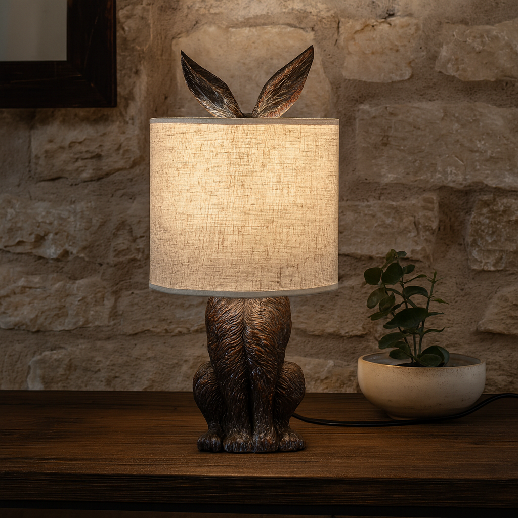 Brown Polyresin 3D Hiding Rabbit Beige E27 Corded Table Lamp Shade